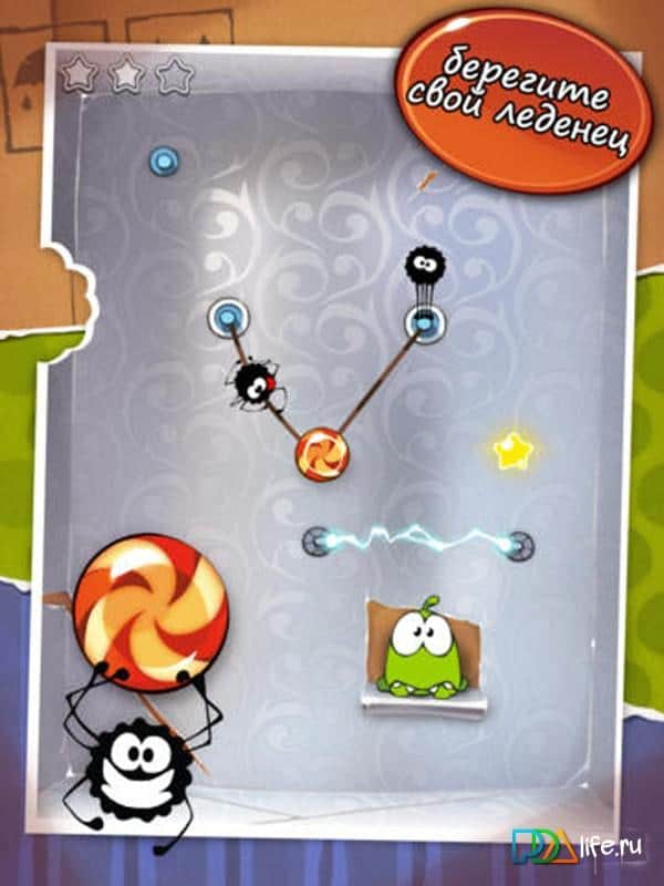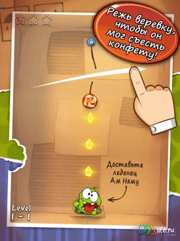 Cut the Rope HD - яркая и красочная головоломка. Однажды вы получили удивительную посылку, в которой оказался обаятельный монстрик. И этот чудак бесконечно хочет сладкого. Помогите насытиться молодому организму - перерезайте веревки, учитывая при этом возможные препятствия - не попадитесь врагам, не дайте паучкам утащить ваши сладости и не забудьте собрать 3 звезды на каждом уровне, чтобы заработать максимальное количество баллов! Физика и графика на высоте, а потому геймплей захватывает с первой минуты. Ну что ж, для того , чтобы победить, понадобиться хорошенько пошевелить мозгами.