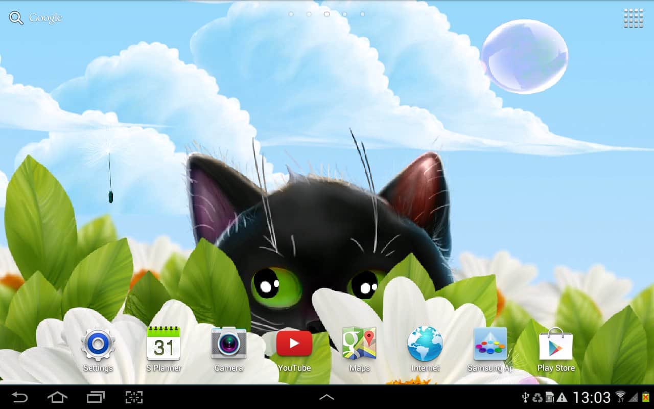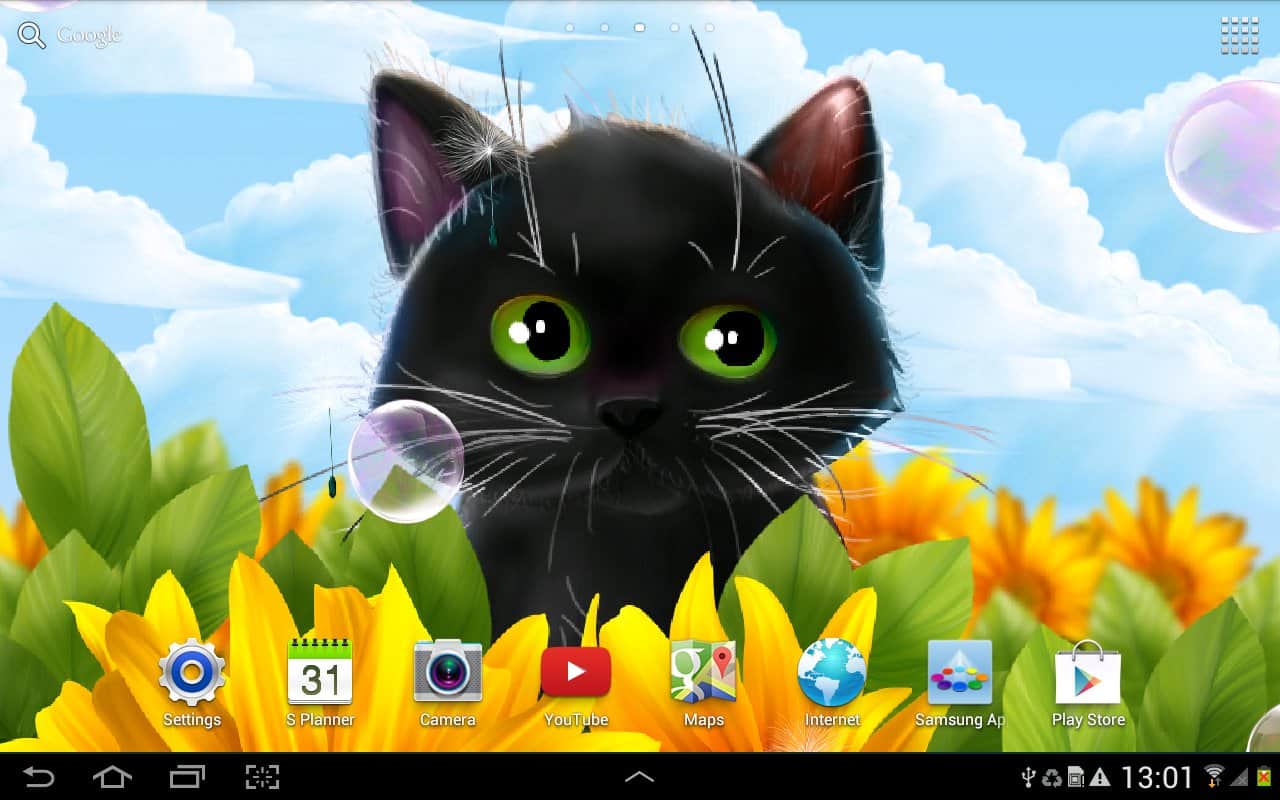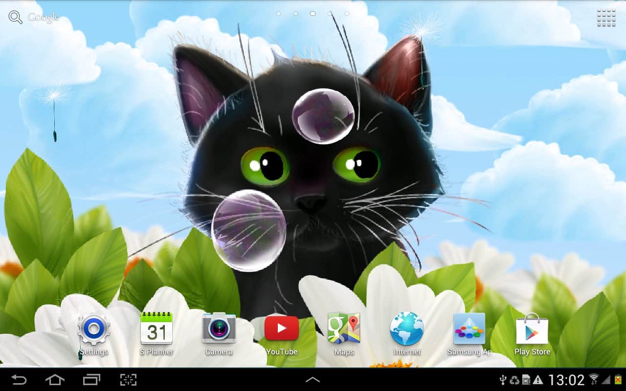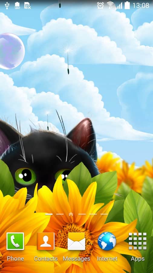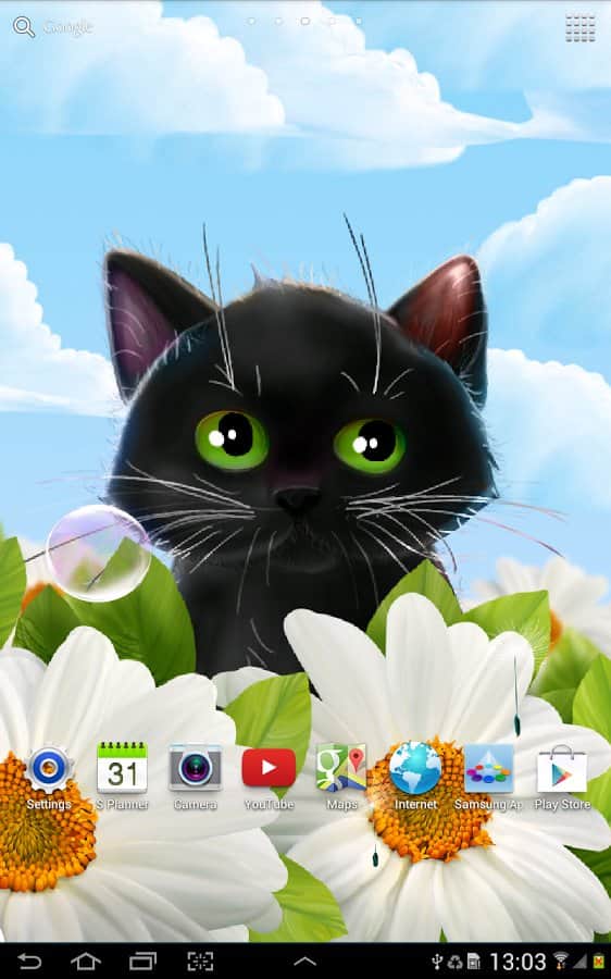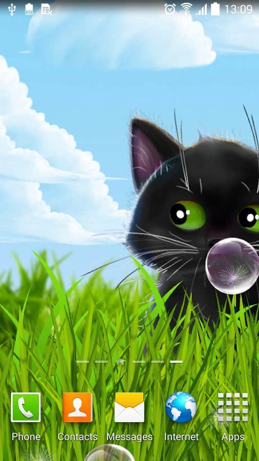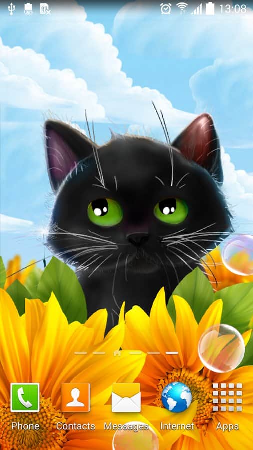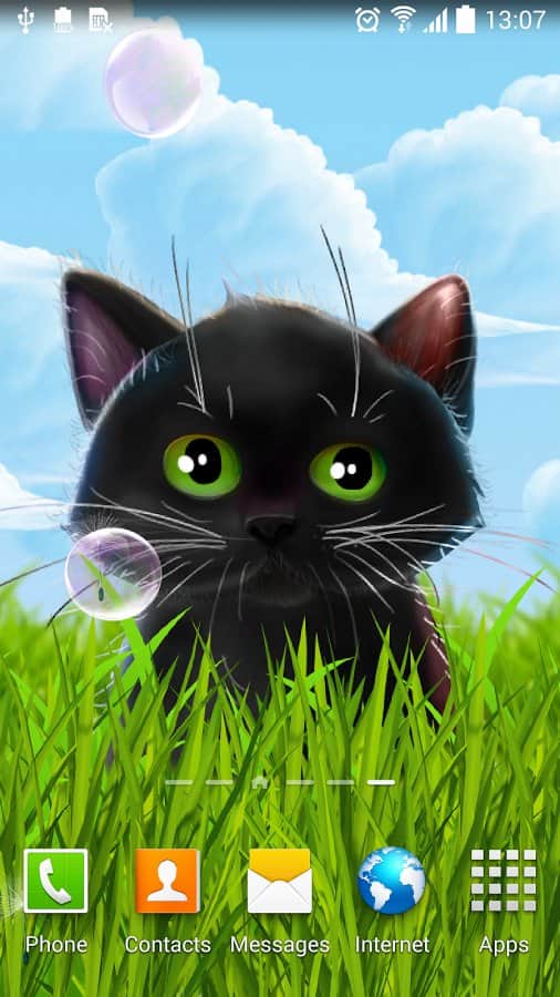 Cute Kitten Live Wallpaper – анімовані живі шпалери на андроїд, де ви будете спостерігати на своєму екрані телефону або планшета милого кошеня. Живі шпалери з чорним кошеням будуть радувати вас кожен день і ви зможете спостерігати як кошеня будує вам очі і полювати за мильними бульбашками і насінням кульбаби. Заходите в налаштування і міняйте задній фон на власний розсуд і настрою. Торкайтеся до екрану пальцем і дивіться, як будуть розлітатися в різні сторони бульбашки і кульбаби. Шпалери підтримують як альбомний так і планшетний режим і добре виглядають за рахунок плавної анімації. Також вони порадують вас численними параметрами.