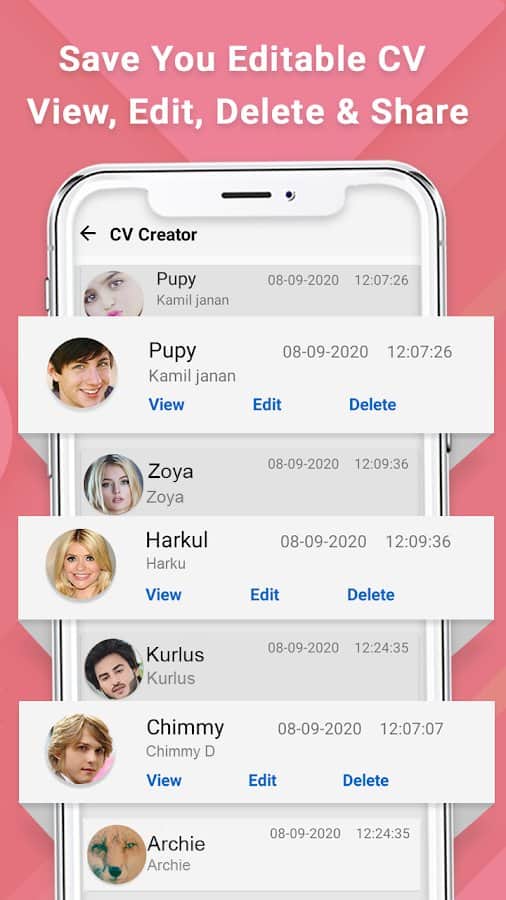 CV & amp;Resume - Maker & amp; Creator - програма допоможе вам створити професійне резюме а функція додавання фотографій в нього зможе під ключ зробити всю роботу за кілька хвилин. Програма зберігає ваше резюме як у форматі PDF, так і у вигляді зображення. Просто напишіть інформацію про себе, а ми створимо для вас професійне резюме без клопоту і проблем.