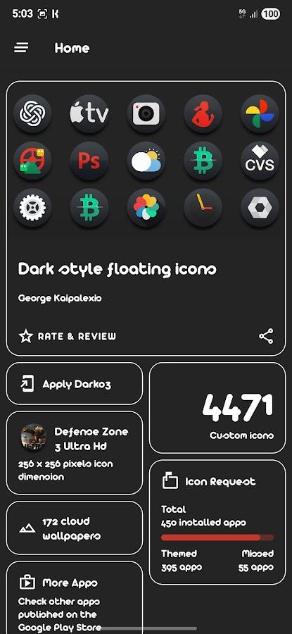 Darko 3 – це вражаючий набір іконок, створений для тих, хто цінує естетичний дизайн та чистоту робочого столу. Іконки вирізняються плавними лініями, унікальною геометрією та ретельно підібраною кольоровою палітрою. Підтримка популярних лаунчерів, регулярні оновлення та висока деталізація роблять цей набір ідеальним вибором для персоналізації вашого пристрою.
