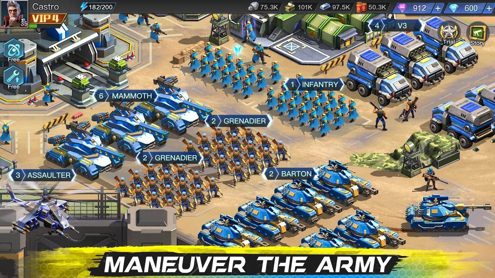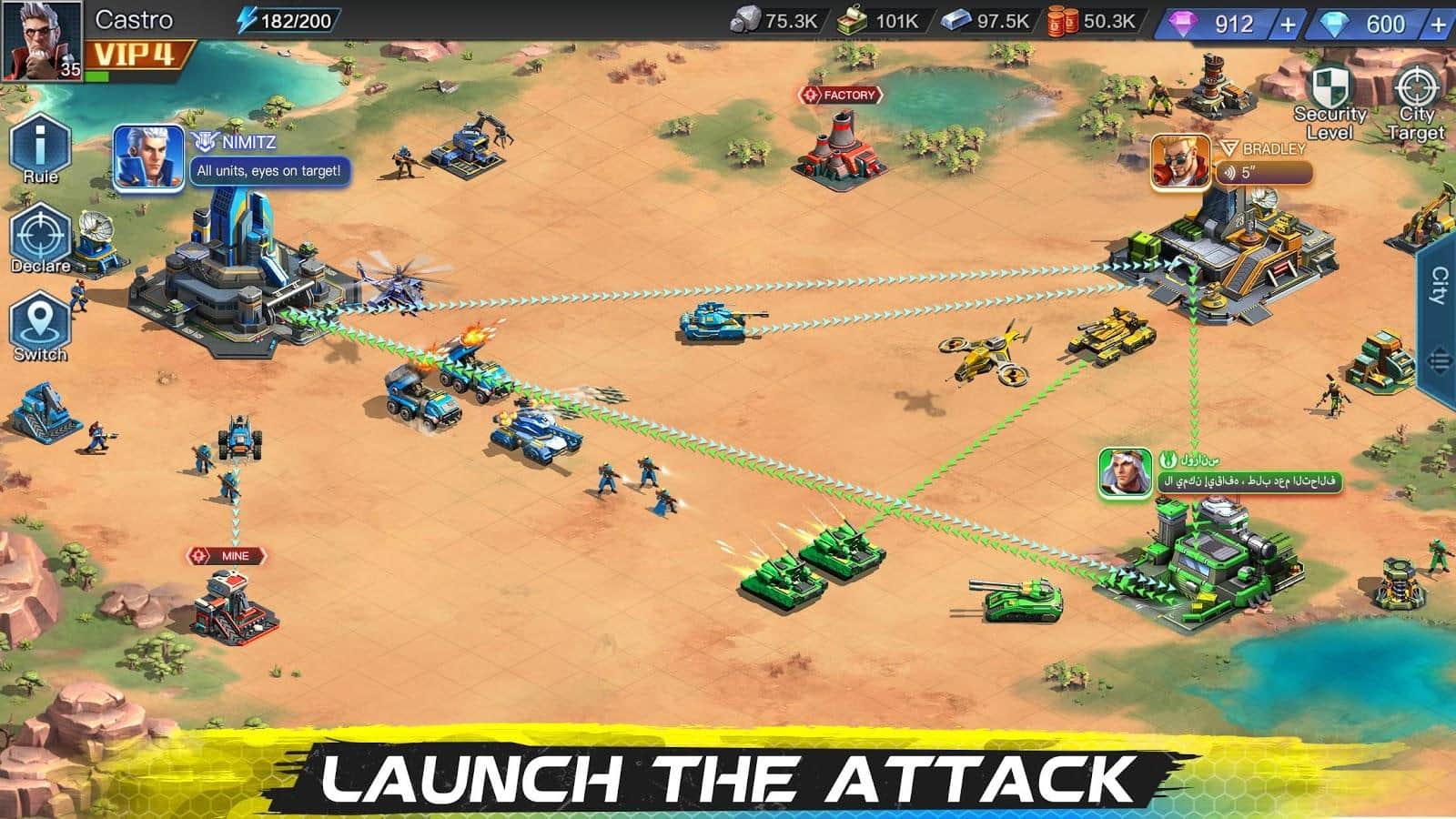 Dawn of Warfare - стратегічна гра, в якій ви дієте в якості командира, будуєте нові військові бази в дикій пустелі, наймаєте і тренуєте воїнів і участь в боях. Підсильте свою армію і захоплюйте міські ресурси, а також властвуйте в зонах військових дій по всій земній кулі. Виберете власну ідеальну тактику, щоб залишатися переможцем в цьому постійно мінливому поле битви.