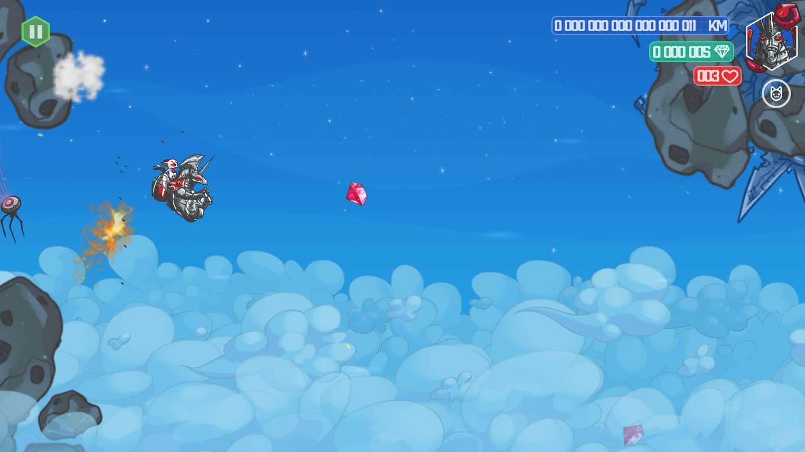 летить крізь хмари з допомогою ракетного ранця. Покажіть на ділі свою