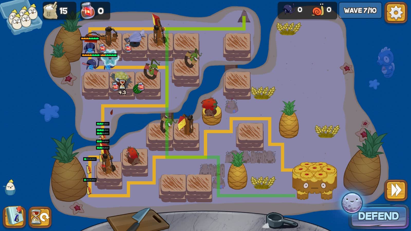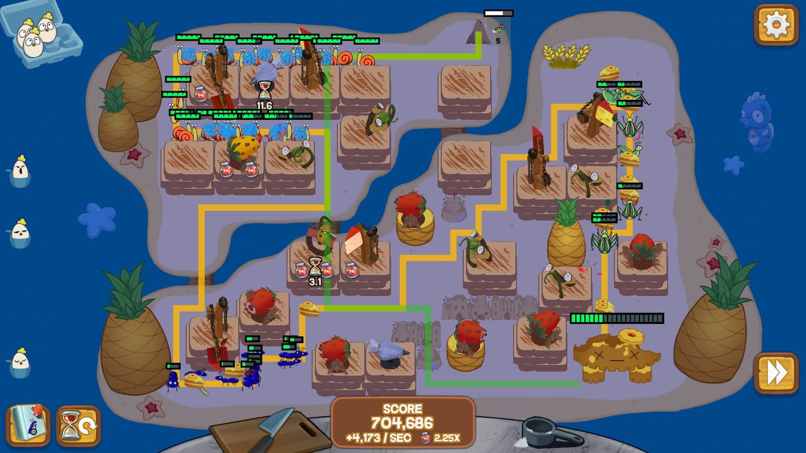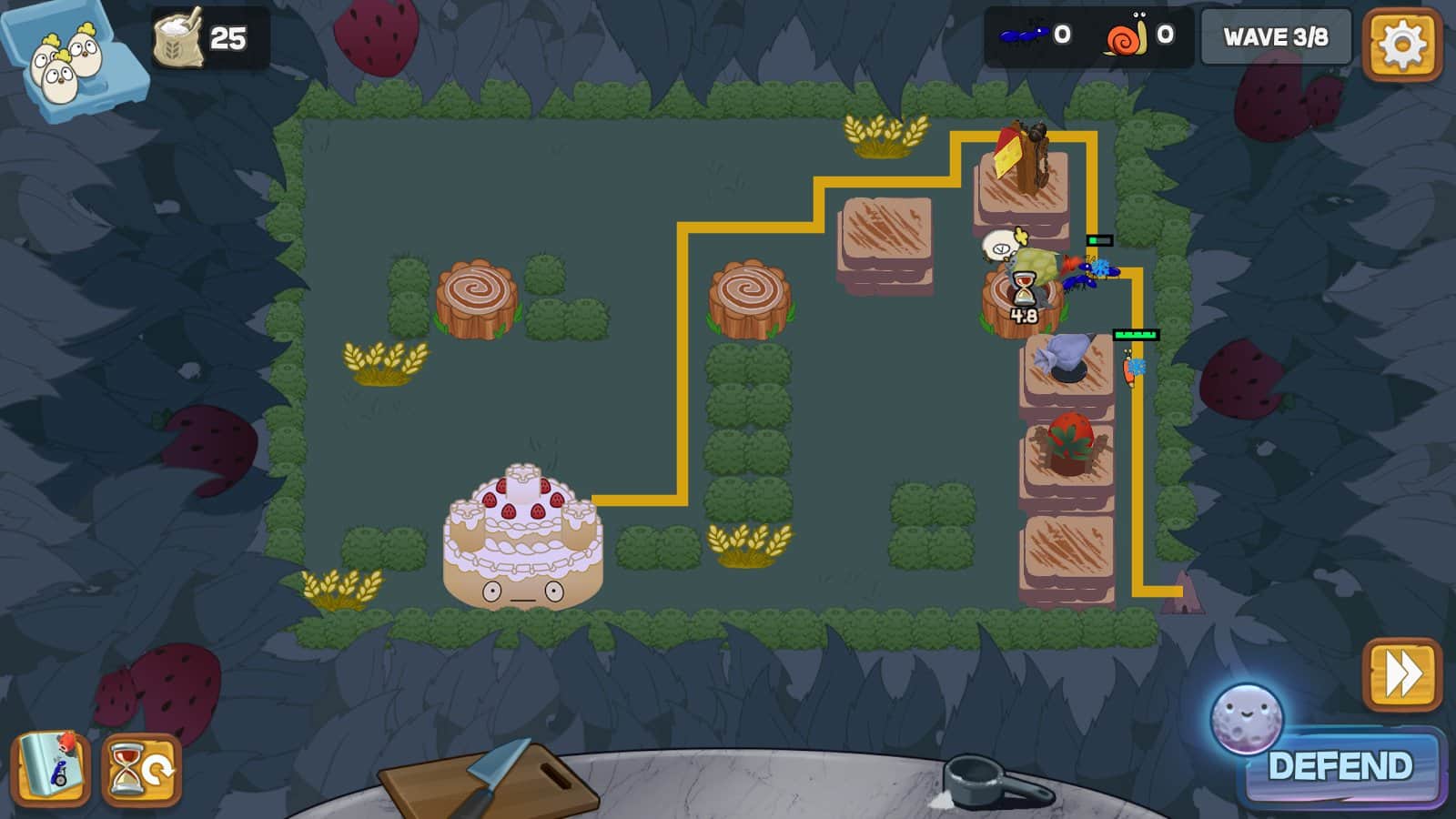 Defend the Cake - тактична стратегія з серії оборона веж з класичної ігровий механікою і відмінною графікою. Однак на цей раз вам доведеться битися з зомбі або гоблінами, розробники гри вирішили обрати більш оригінальний підхід, вам належить постаратися захистити від голодних мурах свою базу яка представлена у вигляді торта. Інший геймплей так само витриманий в подібному стилі, башти у вигляді катапульт з кавунами, заморожують вежі та інше. Крім цього творці реалізували цікаву можливість завдяки якій ви зможете самі створювати лабіринт, вибирати положення бази, що дозволить вам вибрати оптимальну тактику.