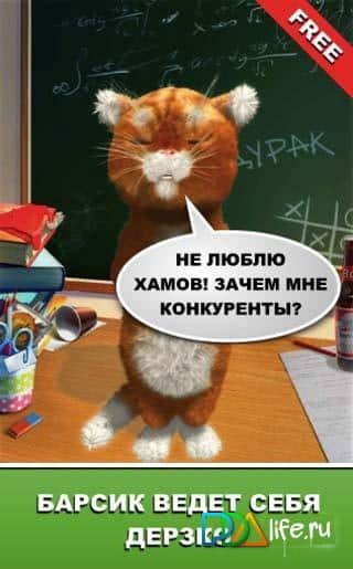 Зухвалий Барсик: новорічний кот - Приютите у себе в телефоні веселого і дуже зухвалого мовця кота. Барсик – не просто говорить кіт, який буде повторювати все сказане вами. Зухвалий кіт може цілком відмовитися вимовляти всілякі дурниці або навіть послати вас куди подалі. Зухвалий кіт Барсик знає величезну кількість різних жартів і приколів, тому ви з ним не занудьгуєте і точно будете в центрі уваги в новорічну ніч.