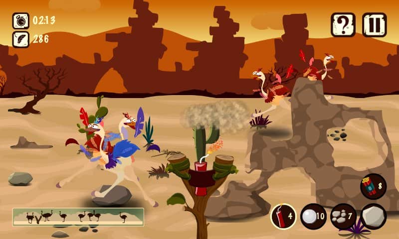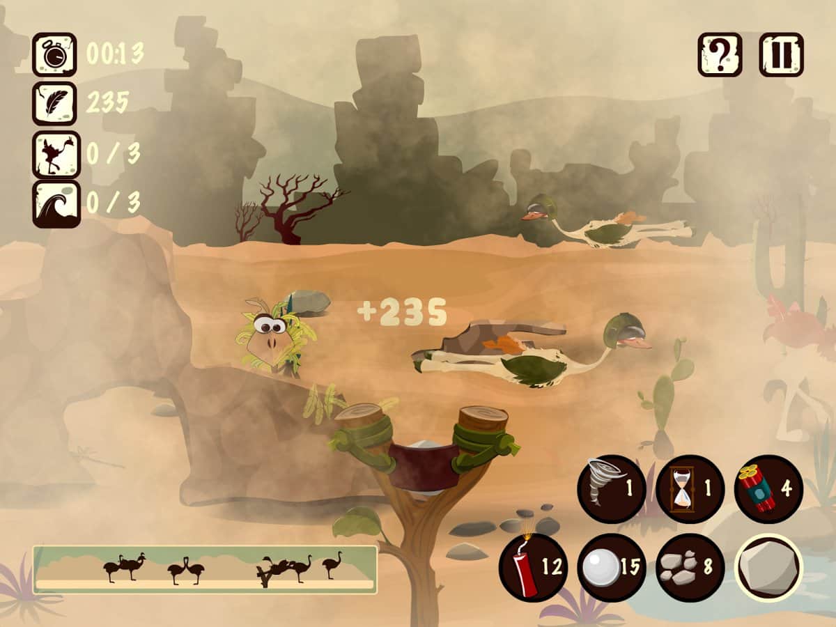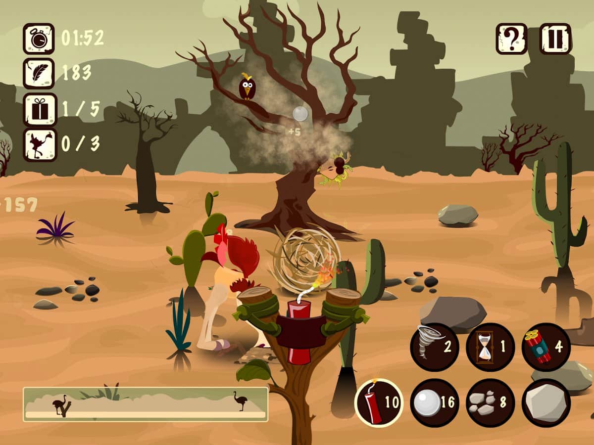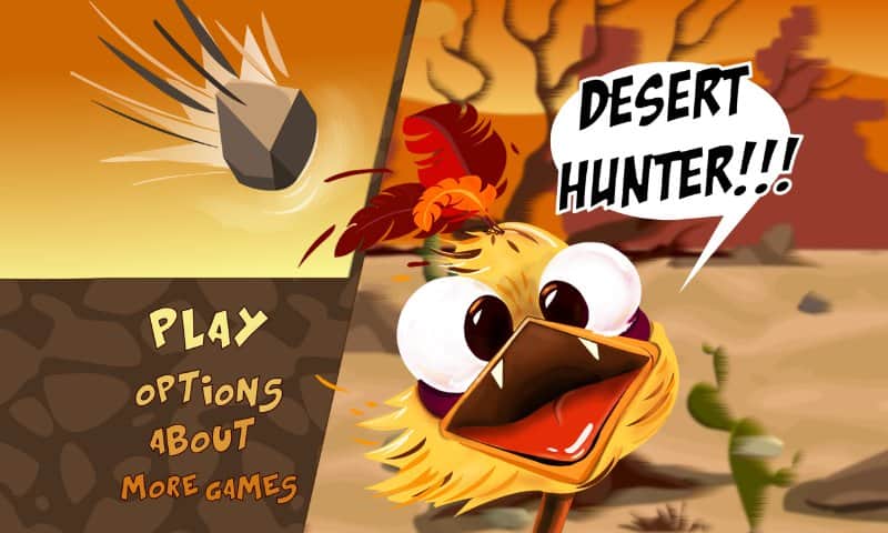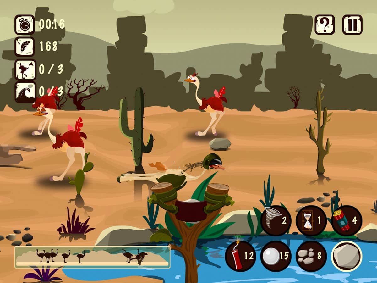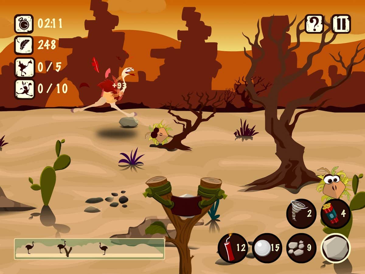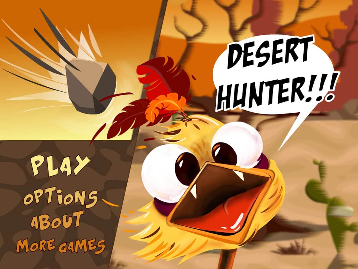 Desert Hunter - Crazy safari - незвичайне сафарі, в якому замість, слонів, носорогів, тигрів і левів ми будемо полює на страусів та інших пернатих. Рушницю нам ні до чого, беремо рогатку і стріляємо в братів наших менших. Заряджаємо рогатку не тільки камінням, але і динамітом, вибухівкою та іншими небезпечними для пташок снарядами. Орієнтуючись по міні-карті, ви завжди будете в курсі того, де і з якого боку чекати черговий трофей.