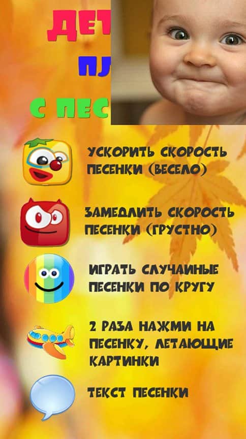 Дитячі пісні - плеєр для малюків - обов'язково підніме настрій вашій дитині і змусить підспівувати під улюблену мелодію.