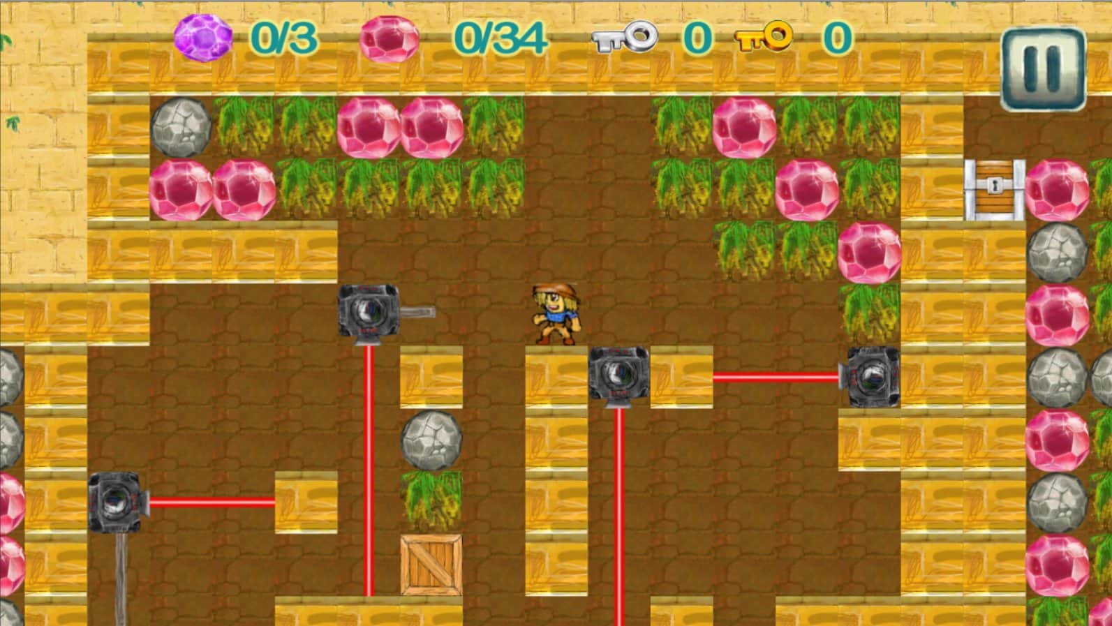 Diamond Rush. Temple Adventure – пригодницька гра на андроїд, де ви будете керувати авантюристом, який досліджує стародавні храми. У цій грі ваш герой буде переміщатися по численних і різноманітних рівнів, і збирати різні кристали. На шляху вашого героя раз будуть з'являтися різноманітні перешкоди, вороги і пастки. Вирішуйте задачки рухаючи камені і переміщатися по рівнях. Всього на своєму шляху ви зустрінете два види алмазів, червоні будуть легко вам даватися, а фіолетові необхідно буде заробити. Отримуйте за три зірки на кожному рівні і переміщайте персонажа за допомогою одного дотику пальця до екрану.