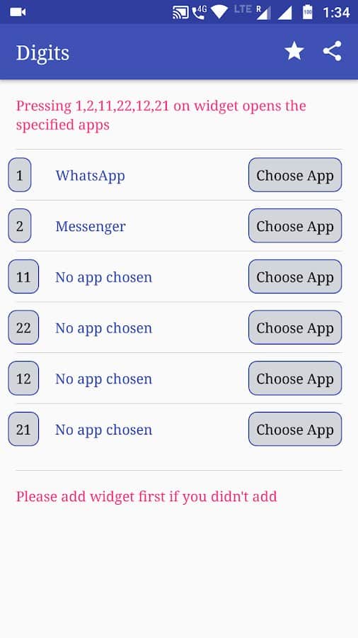 Digits - Widget shortcut to quickly open apps - віджет для відкриття додатків з числовим кодом. За допомогою програми ви зможете відкривати до 6 програм. Зручно швидко і просто відкривати ваші улюблені програми буквальн ів пару кліків.
