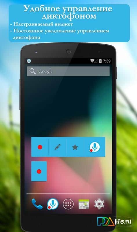 Постійне повідомлення управлінням диктофона (Запис / стоп, Додати коментар, Додати у вибране) - швидкий доступ до диктофону (Тільки в повній версії програми