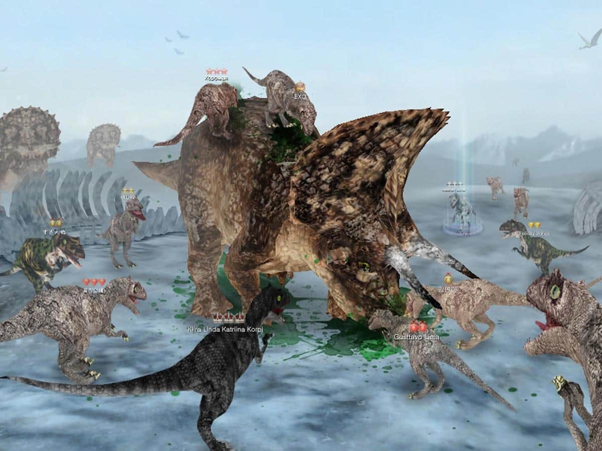 Dinos Online – рольова онлайн гра, яка перенесе вас у часи, коли динозаври були ви чолі харчового ланцюжка. Стаємо динозавром і виходимо на полювання, атакуємо інших більш слабких динозаврів або збившись у зграю нападаємо відразу на велику особина. У динозаврів є свої племена і необхідно зробити так, щоб саме твоя зграя була чільною на своїй території. Якщо і цього буде мало, можна піти на полювання за величезною Кінг Конгом, хоча завалити його на так-то і просто, а спробувавши на смак м'ясо невідомого організму ти сам зможеш стати Кінг Конгом в іншому світі.