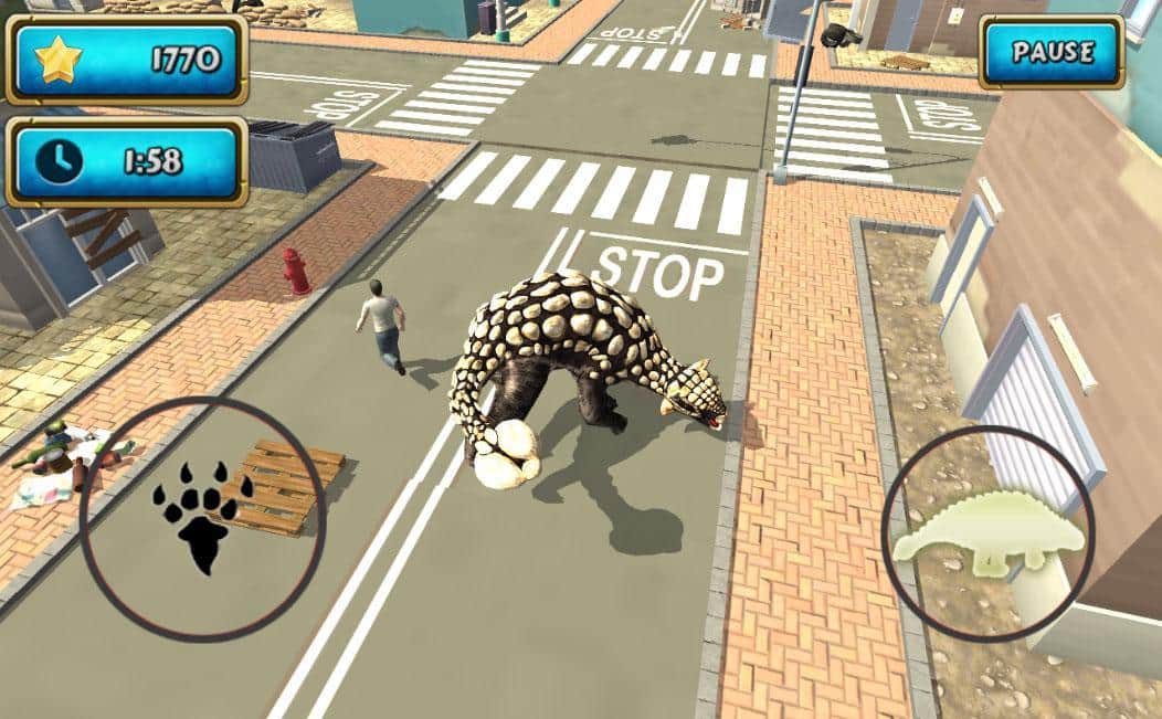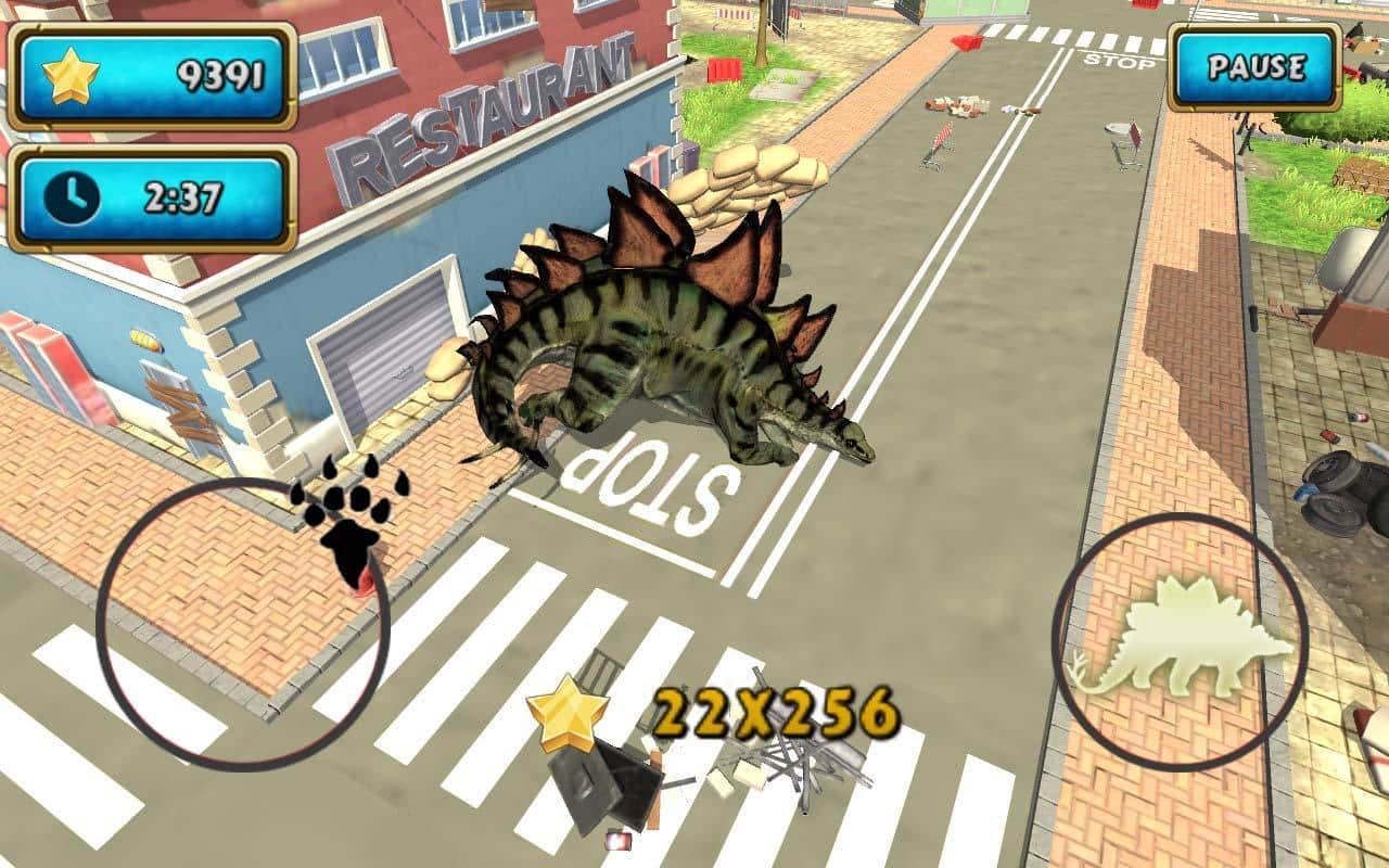 Dinosaur Simulator 2 Dino City – гра на андроїд, де ви будете керувати величезним доісторичним динозавром. У цій грі ви візьмете під свій контроль динозавра і будете переміщатися по сучасного мегаполісу, лякаючи людей і руйнуючи все на своєму шляху. Вибирайте серед 35 динозавром, таких як тиранозавр, стегозавр, трицератопс та інших, свого і вперед, назустріч пригодам. Застосовуйте незвичайну силу динозавра, щоб викорчовувати з коренем дерева, прибирати з дороги машини і ламати стовпи. Грайте в цю гру і насолоджуйтесь реалістичною фізикою, величезним містом і 6 унікальними рівнями.