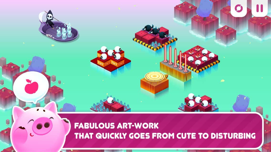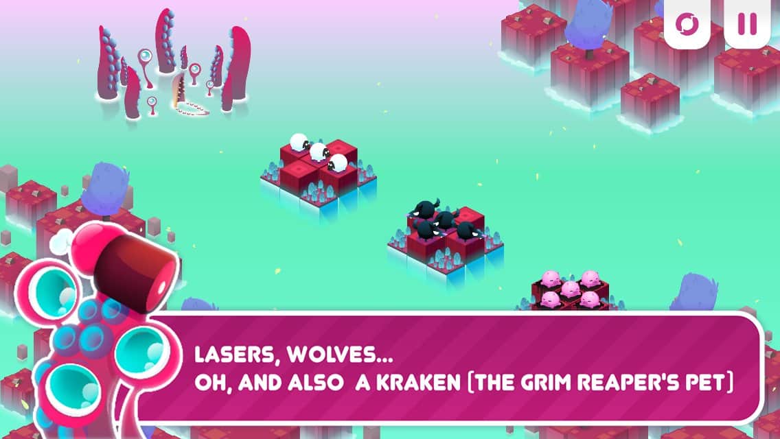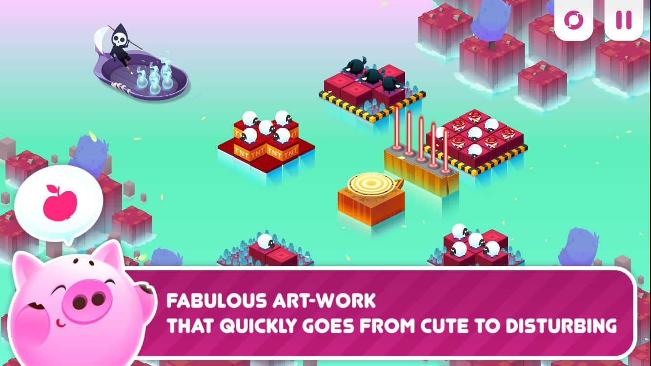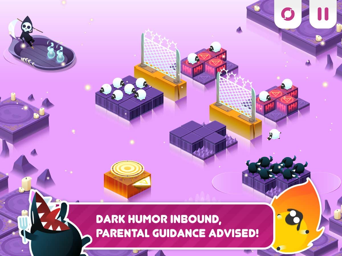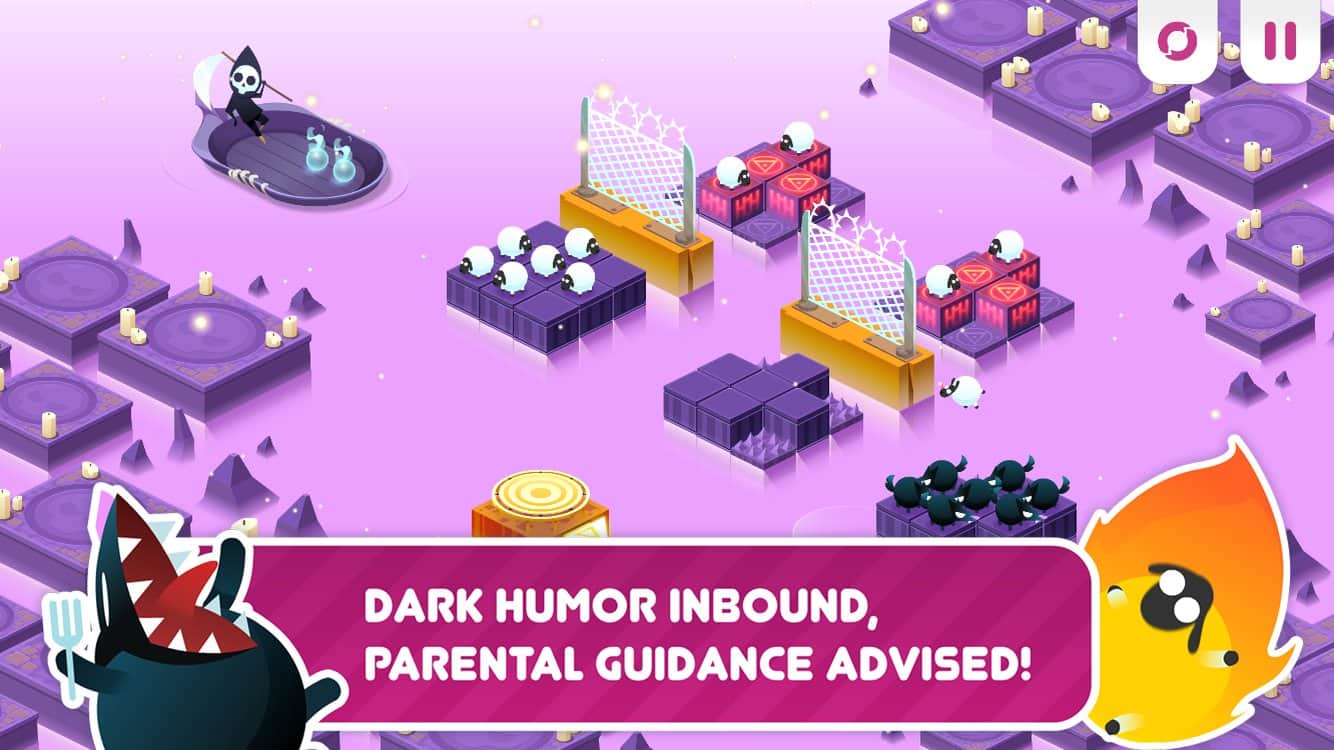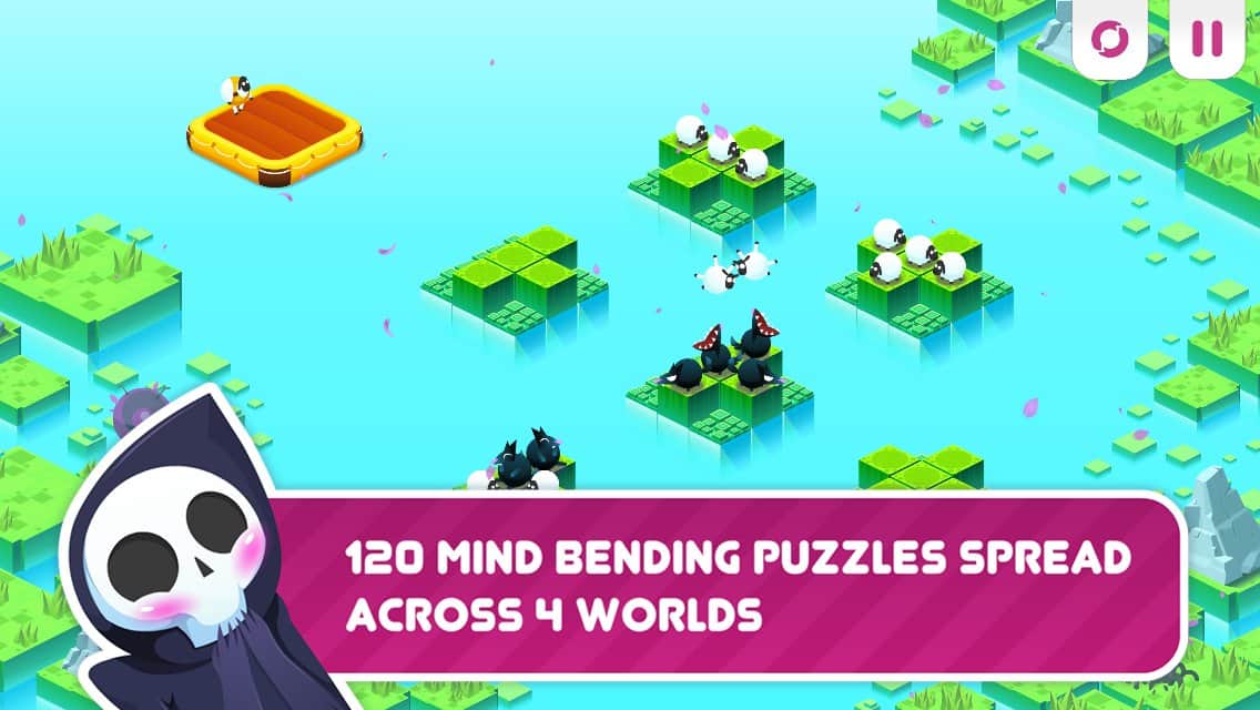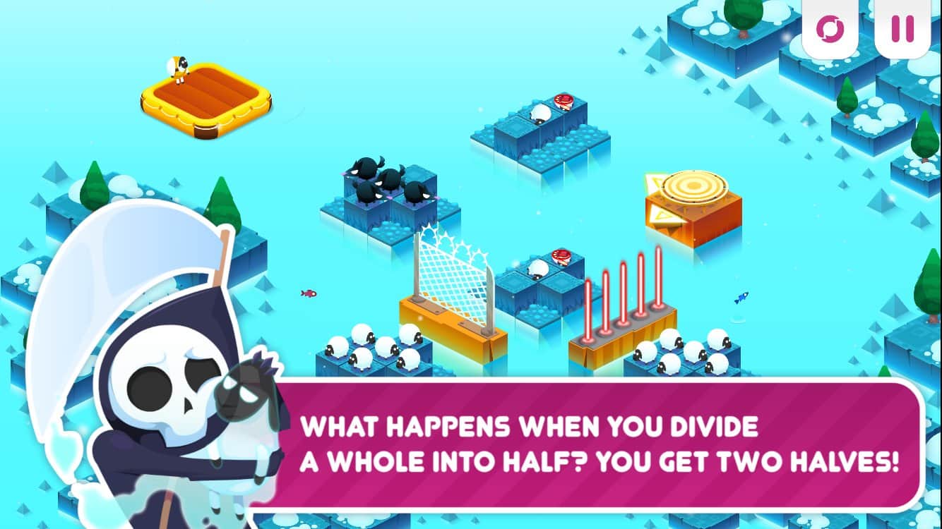 Divide By Sheep – математическая головоломка на андроид, по разделению овец. В этой игре Грим живущий в преисподних решил затопить весь мир и тем самым заполучить в свое царство овец, свиней и волков. Вашей задачей будет помочь бедным животным перемещаться по разнообразным платформам и при этом не упасть в воду. Приложите все свои математические знания, чтобы разделить овец путем складывания и вычитания. Эта игра по началу покажется вам довольно легкой, но с каждым новым уровнем она перерастет в более сложную с черным юмором. Впереди вас ждут 120 неповторяющихся головоломок разделенных на 4 мира.
