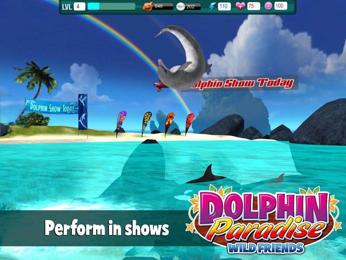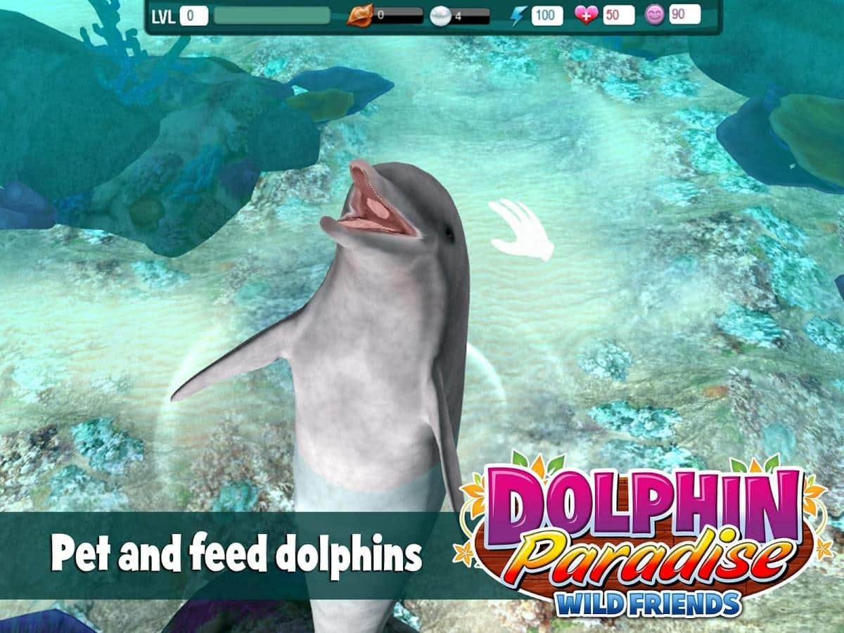Dolphin Paradise: Wild Friends - игра на аndroid, в которой у вас в телефоне появится питомиц дельфин. Вам предстоит ухаживать за ним, вкусно кормить и обучать всевозможным трюкам для того чтобы участвовать в конкурсах. А также очищать голубую лагуну от медуз, в которой живет дельфин, тем самым зарабатывать бонусы в виде раковин и жемчуга. Которые можно потратить на покупку реквизита для конкурса, лакомств или покупки еще одного дельфина.
