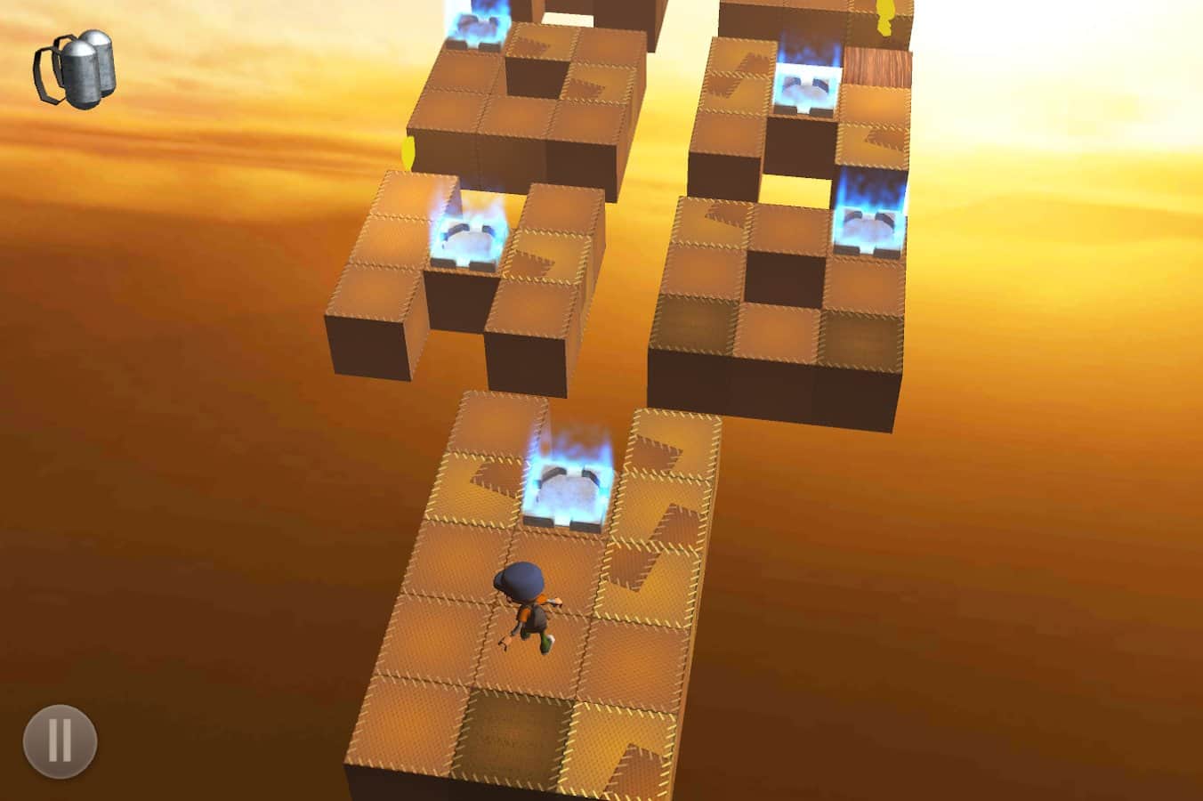 Don't Stop: Puzzle – допоможіть нашому герою потрапити на свій літаючий корабель. Вся дія гри відбувається в небі, невелика ділянка якого складається з ігрового поля, на якому знаходяться різні плити, на деяких з них знаходяться ящик, які необхідно обійти, а на інших плитах - різні пастки яких треба уникати. Крім цього, якщо наступити на плиту – вона через кілька секунд обрушиться. Так що необхідно дуже швидко рухатися по них. Кожен рівень можна пройти різними способами і від цього грати буде ще цікавіше. У грі кілька світів з різним візуальним стилем