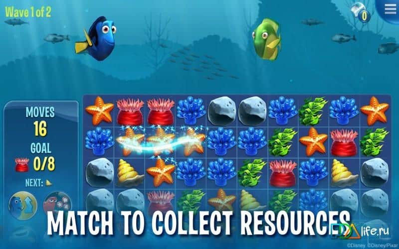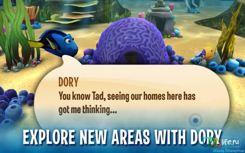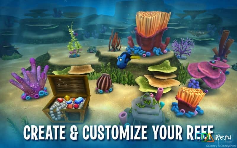 Dory's Reef - Пориньте в чудовий підводний світ і почніть дослідження разом з Дорри і новими друзями. У грі вас чекає безліч дивовижних пригод. Отримуйте всі нові нагороди, досліджуйте різні області океану, почніть збирати колекцію риб і нарешті побудуйте свій унікальний риф!