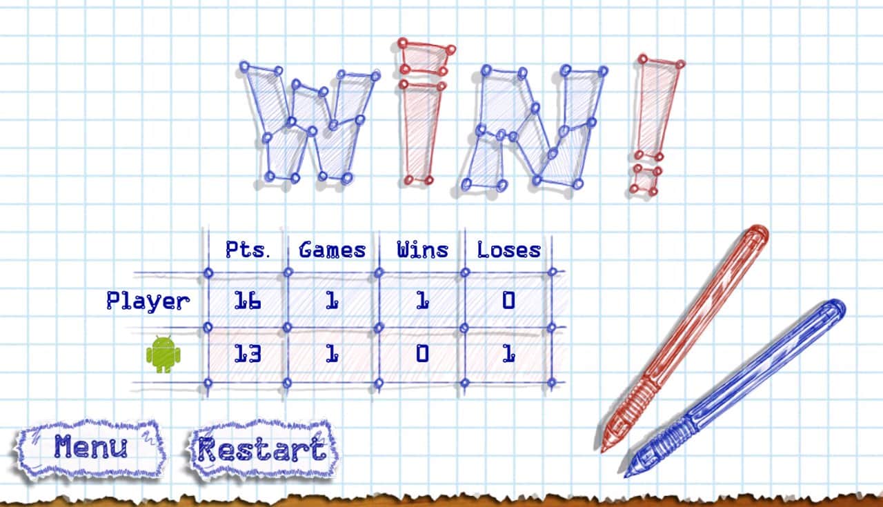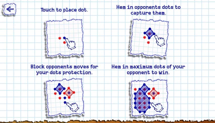 Точки Онлайн / Dots Online - все напевно пам'ятають гру в точки. З аркуша паперу в клітинку гра дісталася до андроїд пристроїв. Ваше завдання ставити точки, поїдаючи точки вашого суперника. Виграє той, хто з'їсть більше точок ніж суперник. Гра має онлайн мульти плеєр, так само можна пограти з друзями через протокол блютуз або удвох на одному пристрої. Однак є і одиночна гра з комп'ютером.