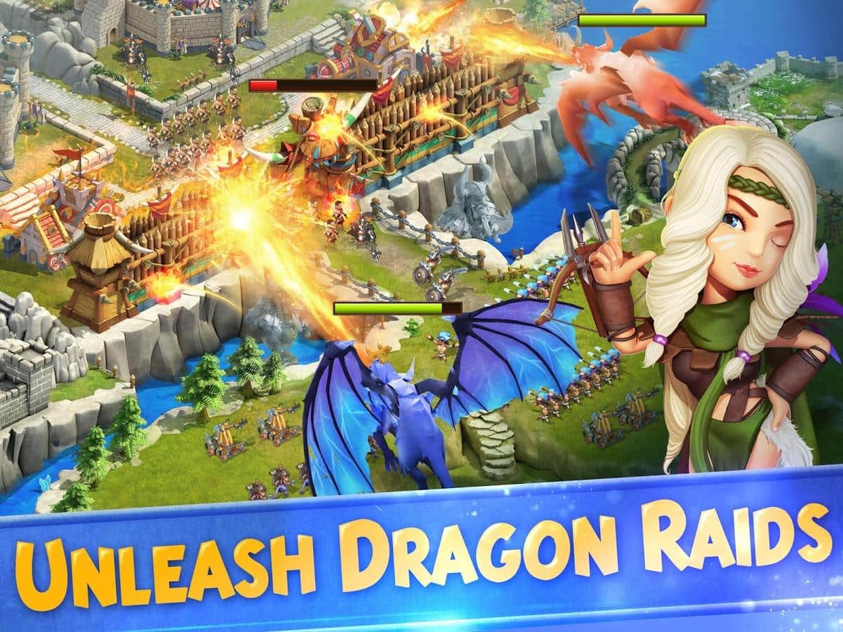 Dragon and War – стратегія на андроїд, де ви будете керувати невеликий селом і намагатися привести її до процвітання. Будуйте різні будівлі, керуйте місцевими жителями, збирати величезну армію і здобувайте корисні ресурси. Вашої головним завданням у цій грі буде перетворити своє село в процвітаюче королівство. Витрачайте зароблені гроші і здобуті ресурси на поповнення своєї армії, різні технології та дослідження. Приручати вогнедишних драконів і з допомогою їх сили перемагайте могутніх ворогів. Вступайте в численні битви і застосовуйте в бою чітко продуману тактику і стратегію.