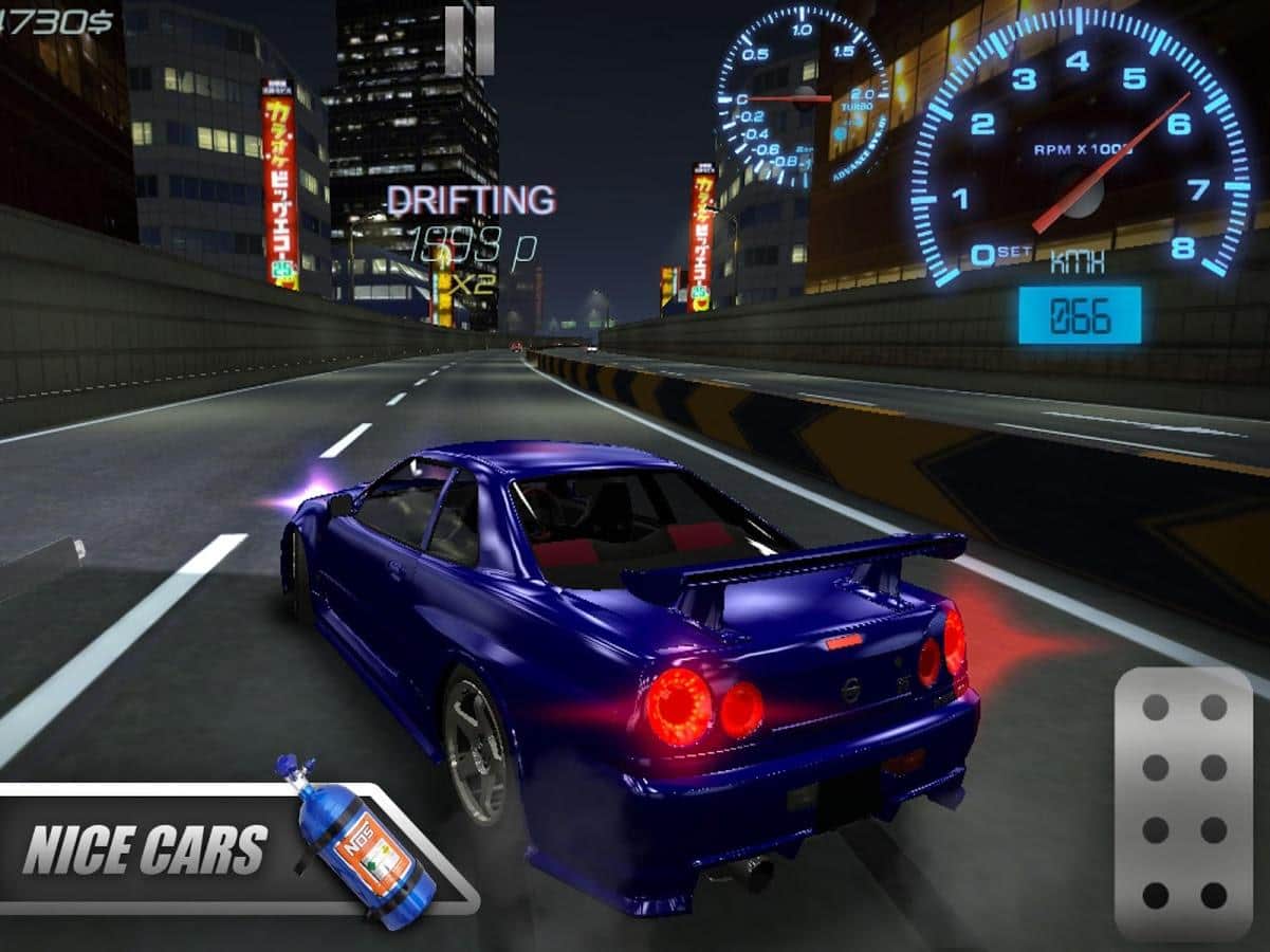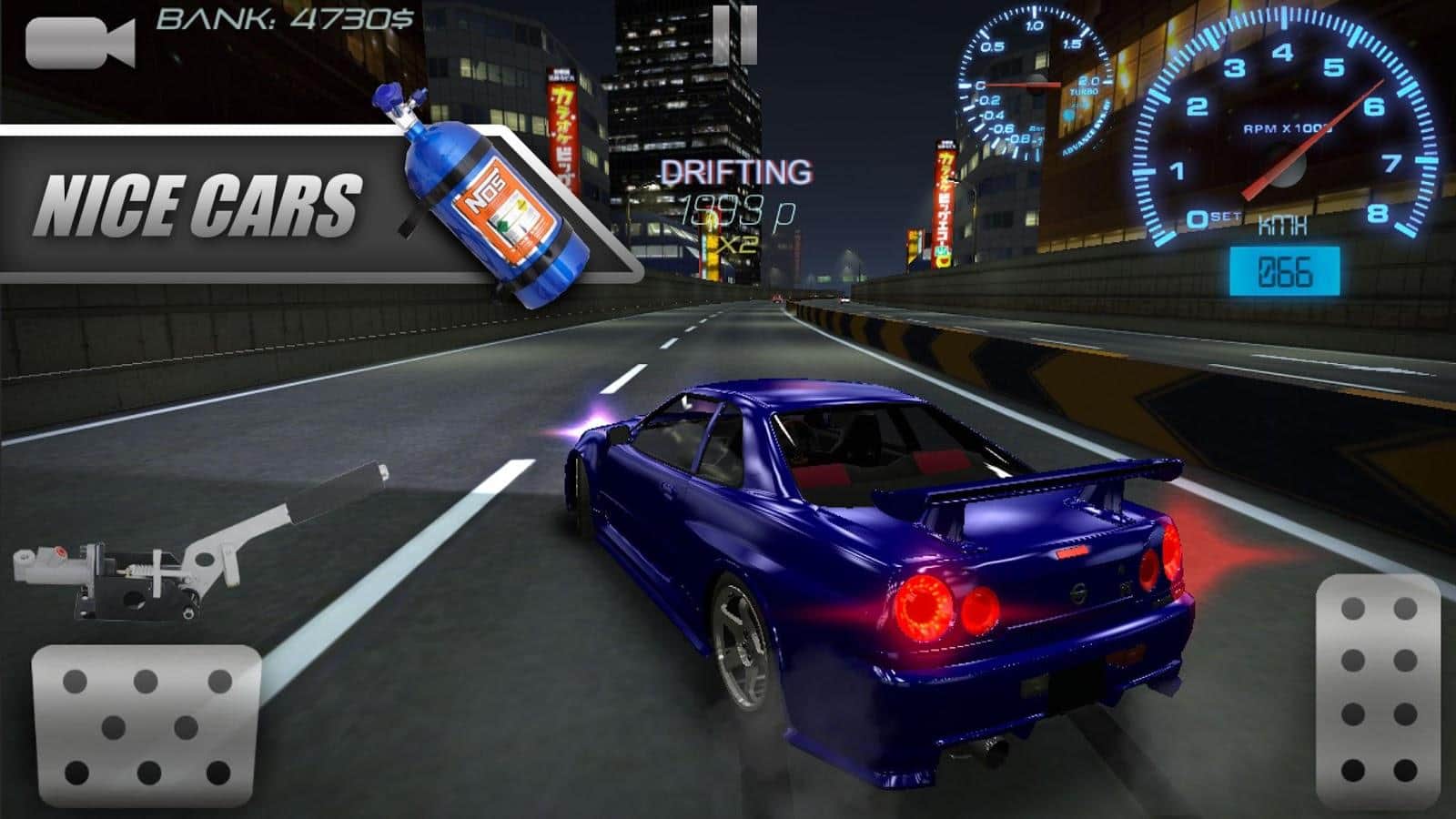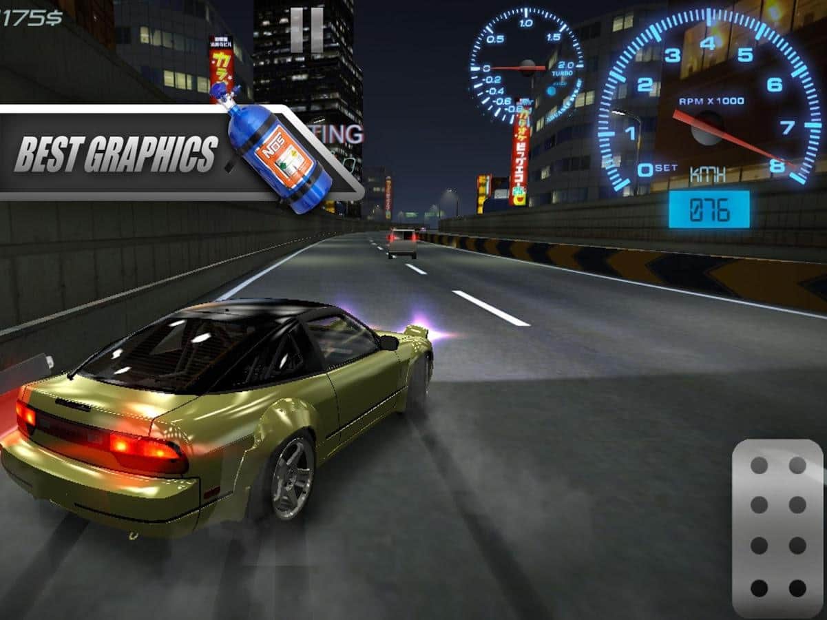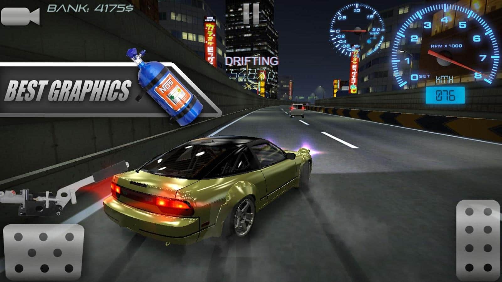 Drift Streets Japan - Любителі дріфту приєднуйтесь до захоплюючим гонок по нічному місту Японії. Дана гра зроблена дуже просто, але при цьому не тільки має приємну графіку але так само і просту систему управління, за допомогою пари педалей ви зможете їхати або ж гальмувати, а з допомогою нахилу смартфона можна буде повертати. До того ж тут дуже детально опрацьована фізика, так що ганяти буде вельми цікаво.