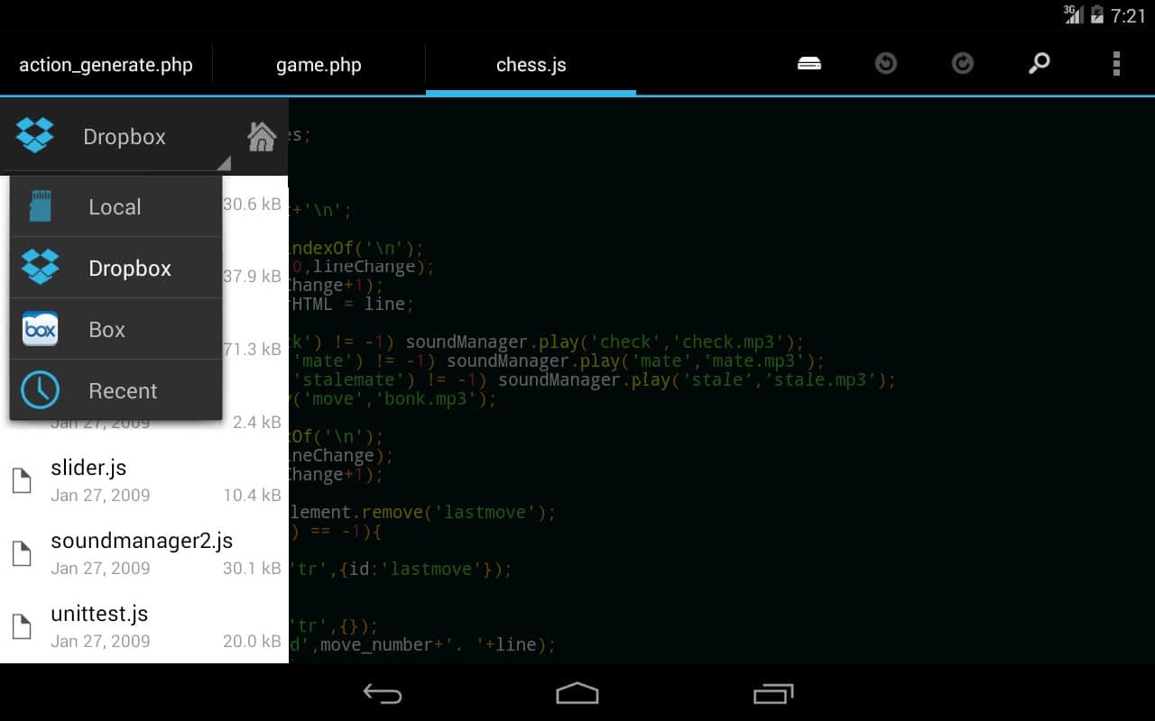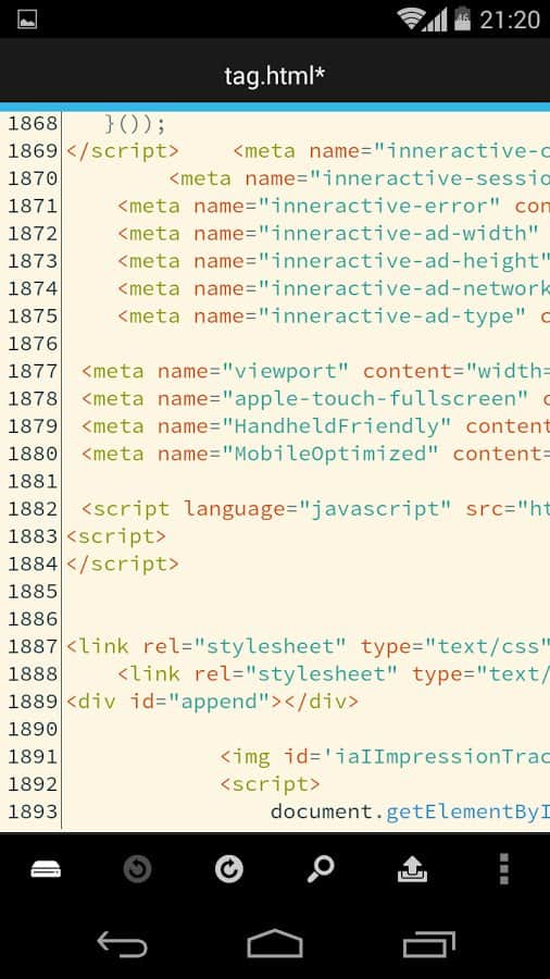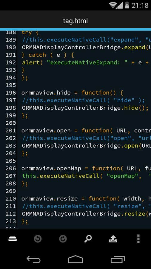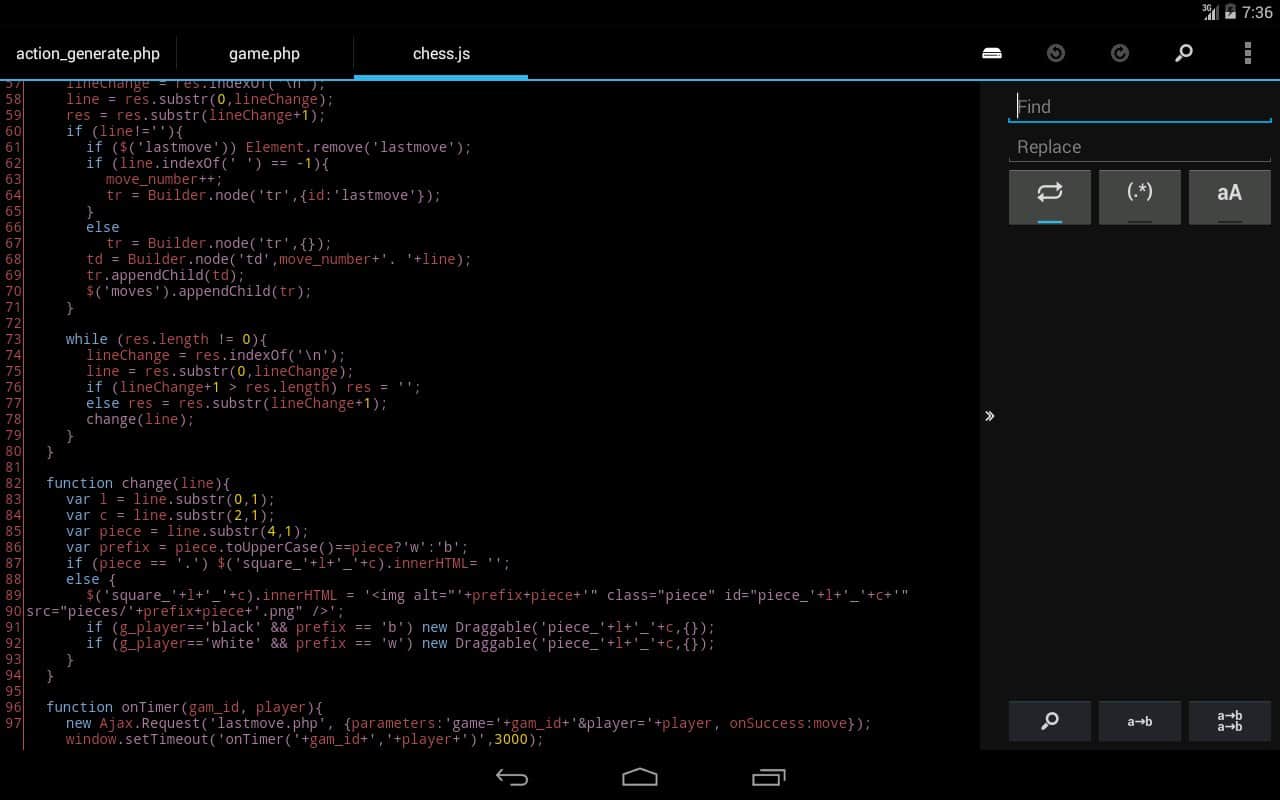 DroidEdit (free code editor) - Забавне додаток для редагування коду, а при наявності root прав, ви зможете редагувати код свого смартфона. Воно так само підсвічує синтаксис, і підтримує безліч мов.