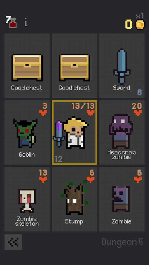 Dungeon Cards – покрокова карткова гра на андроїд, в форматі рогалик. У цій грі ви будете керувати картою з героєм, яка розташована на полі з 9 карт. Для того щоб зробити хід вам необхідно взаємодіяти з іншими картами. Вас будуть оточувати карти з монстрами і пастками, які будуть зменшувати ваше здоров'я, будуть карти які лікують, карти із лутом і скарбами, а також карти з чупакаброю. Дослідіть численні підземелля і бийтеся з ворогами і збирайте скарби. Гра порадує вас простими і зрозумілими правилами, ігровими сесіями по 3-15 хвилин і управлінням в один дотик.
