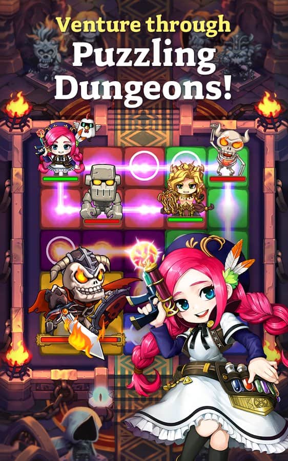 Dungeon Link – RPG с элементами головоломки, в которой вам предстоит соединять между собой клетки и наносить мощный удар. В этой игре вы отправитесь в увлекательное путешествие по красочному миру Кантербери, который хочет захватить король демонов. Начните свое путешествие прямо сейчас и познакомьтесь с многочисленными героями, которые могут стать вашими друзьями и сражаться за честь и справедливость вместе с вами. Нанимайте на службу опытных героев и применяйте всю их мощь против врагов и демонов. Соединяйте как можно больше клеток между собой и наносите смертельный удар, а также используйте силы стихий и причиняйте большой урон врагам. Соберите коллекцию из более 250 героев и создайте свою непобедимую команду.