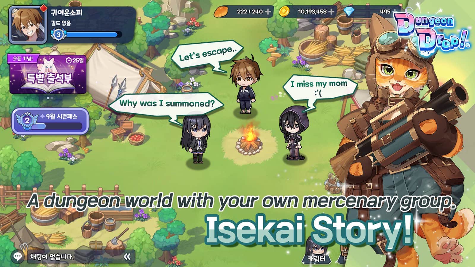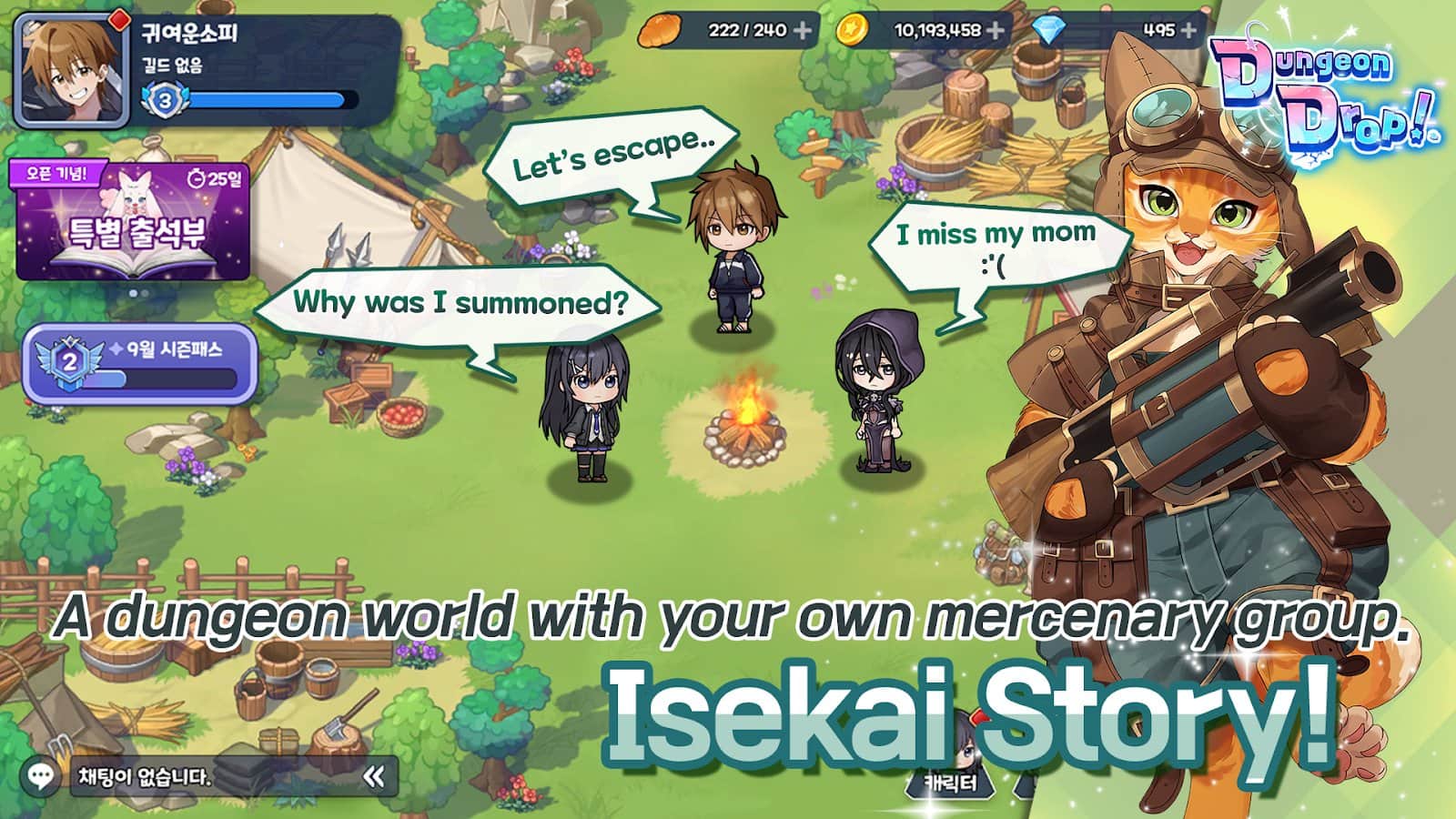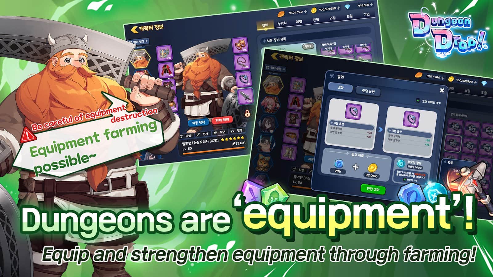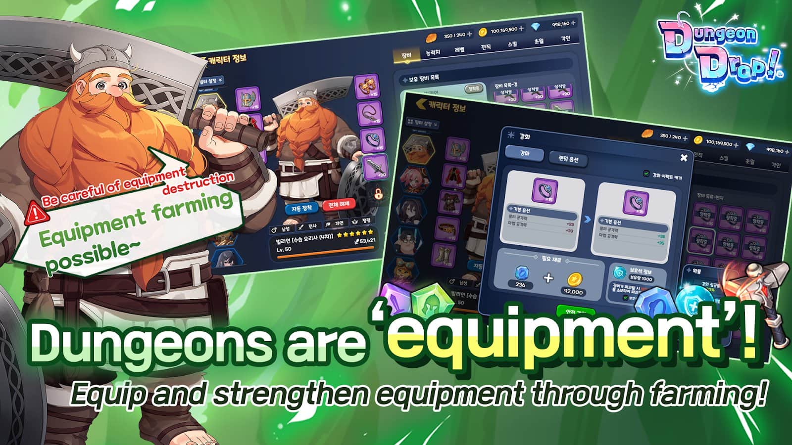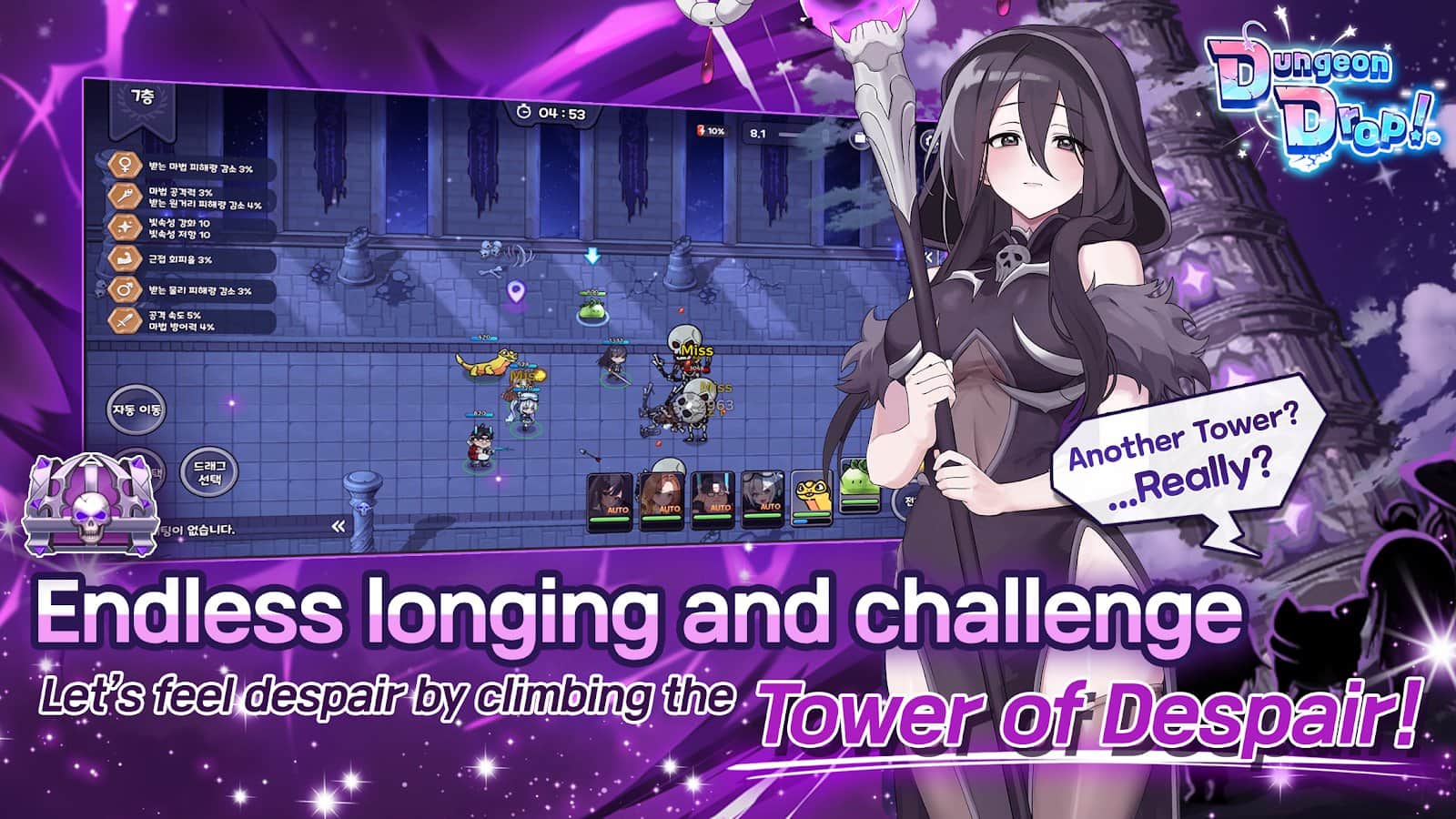 DungeonDrop! - ви опиняєтеся у таємничому світі підземель, сповнених несподіваних відкриттів та дивовижних випробувань. Вас чекає незвичайна подорож, де ви зустрінете харизматичних персонажів та милих монстрів, готових приєднатися до вашої пригоди. Створіть унікальну комбінацію зброї та здібностей, покращуйте предмети та налаштовуйте героїв під свій стиль гри. Досліджуйте величезний світ, підкоряйте підземелля з босами, пройдіть Башту Відчаю та киньте виклик собі! Попереду вас чекають битви гільдій, рейди та неймовірні випробування!