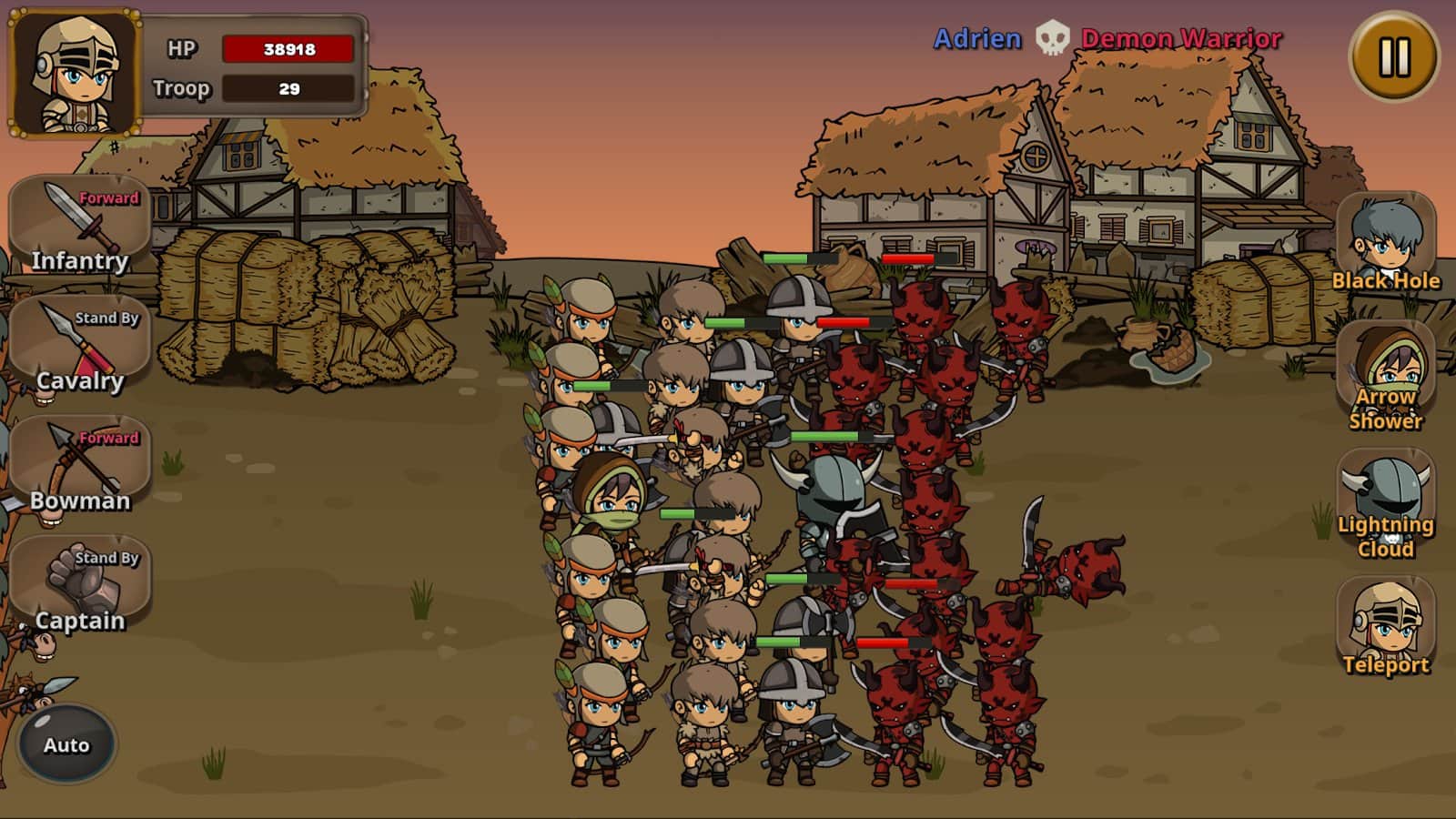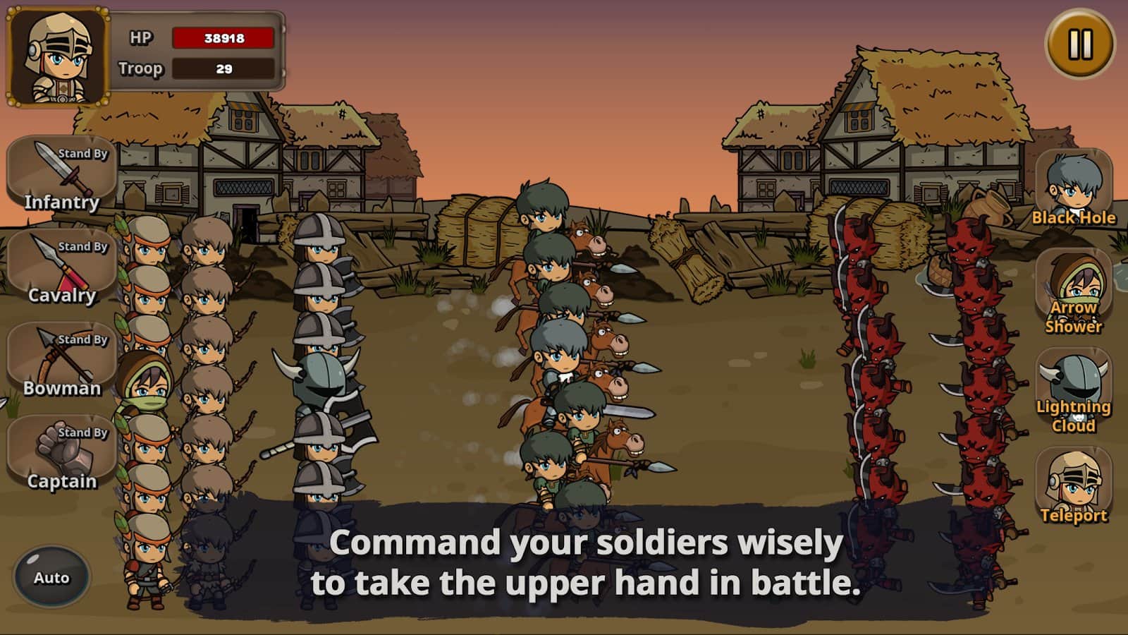 Солдат рангу E - беріть активну участь у багатьох битвах проти різних монстрів, які осмілилися напасти на ваші території! Станьте головнокомандувачем у загоні найманців, виконуйте всі завдання та події, правильно розставляйте своїх воїнів під час боїв, підкоріть Вежу Черепа за допомогою сил одного героя та переміщуйтеся між необхідними будівлями, щоб робити там те, що вам потрібно. Вирушивши в темне підземелля, намагайтеся ретельно його очистити від зла, оскільки там знаходяться важливі предмети для вас.