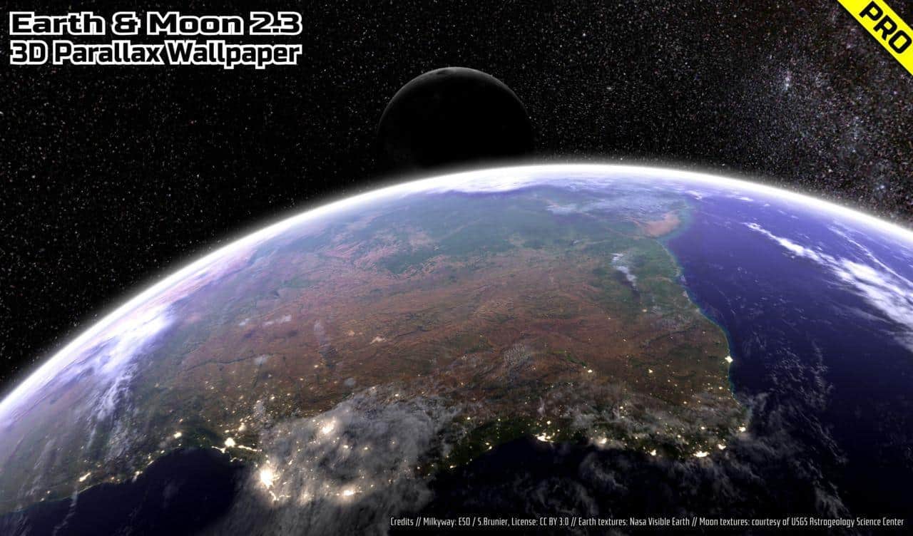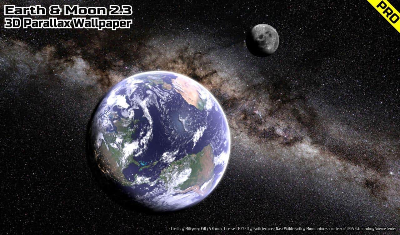 - Earth & Moon in HD Gyro 3D PRO Parallax Wallpaper