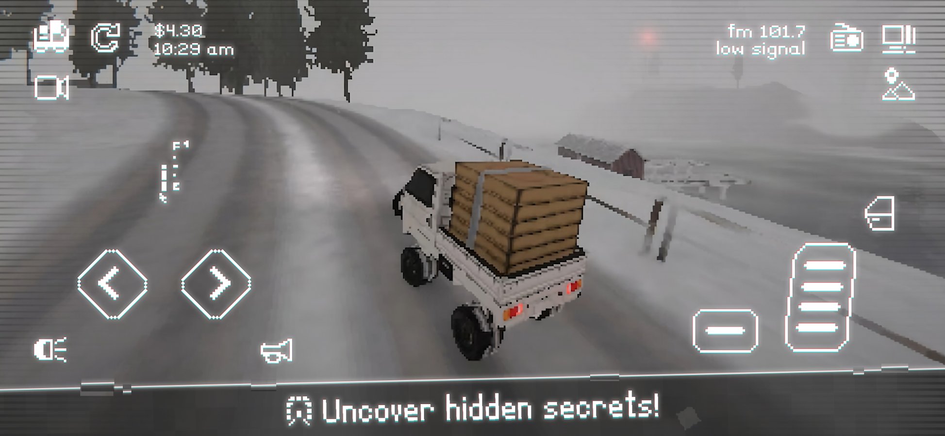 Вас найняли кур'єром у гірське село. Завдання просте: забирати посилки, доставляти адресатам, отримувати гроші. На зароблене купуєте пальне — воно тут дороге, — а решту вкладаєте в апгрейд свого вантажівки. Машина стара, але з новими деталями відкриваються нові маршрути.