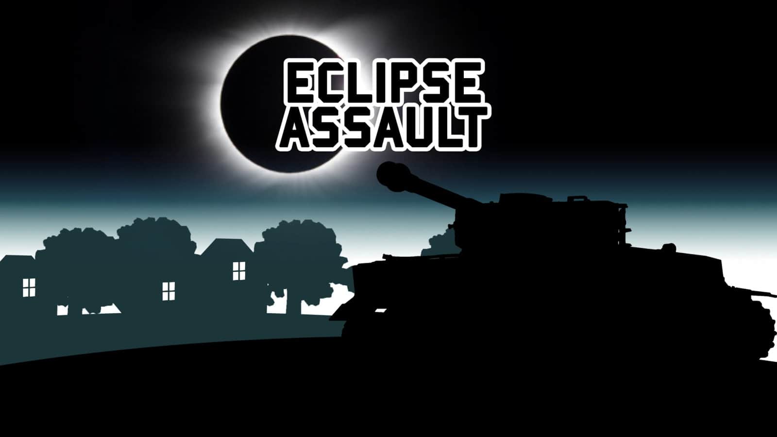 Eclipse Assault - простий і нехитрий екшен-ранер з горизонтальною прокруткою. Події гри розвиваються під час сонячного затемнення, в період цього природного явища ваш рідний місто опинилося під загрозою захоплення. І вам нічого не залишається як сісти у свою бойову машину і відправитися на знищення ворогів. Геймплей Eclipse Assault гранично простий, танк рухається і стріляє сам, ваше завдання полягає лише в тому щоб управляти стволом гармати, направляючи його на ворогів, відбиваючи хвилю за хвилею. Візуально гра виконана в темних тонах, що пояснюється сонячним затемненням, хоча подібний підхід ігрового процесу і надає особливий колорит. Даний проект підійде для того щоб скоротати декілька вільних хвилин і не більше.