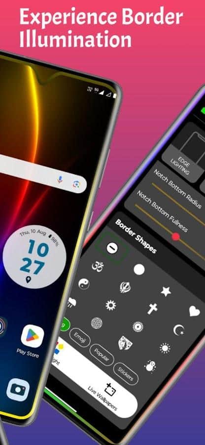 Edge Lighting - це не просто ще один додаток для поліпшення зовнішнього вигляду вашого пристрою на базі Android, це мистецтво створення захоплюючих візуальних ефектів прямо на вашому екрані. З більш ніж 100 різними стилями та ефектами шаблонів, додаток дає вам можливість налаштувати світлові межі так, щоб вони відповідали вашому настрою та стилю. Світлові межі не лише красиво оформлять ваш екран, а й підкреслять його вигини, створюючи унікальний та захоплюючий вигляд. З додатком ви можете вибирати з різних шаблонів, включаючи серця, місяці, хмари, зірки, тварин, смайлики та багато іншого. Це дозволяє вам створювати атмосферні ефекти, які будуть радувати око та піднімати настрій. Крім того, додаток забезпечує максимальну гнучкість налаштування, дозволяючи регулювати ширину, швидкість та кольори RGB світлодіодного підсвічування. Це дозволяє вам повністю володіти своїм візуальним досвідом та підлаштувати його під свої уподобання.
