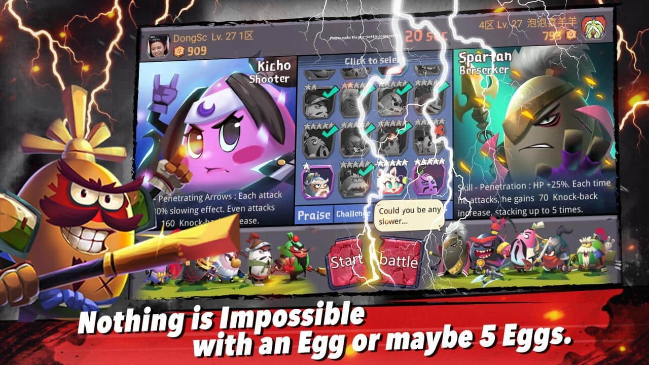 Egg Heroes Saga – стратегія на андроїд, де ви будете керувати унікальною армією складається з яєць. Зберіть свою непереможну армію, яка буде складатися з неповторних бійців, які мають унікальне зброю і навички. Станьте найбільшим полководцем і доведіть всім що ви досвідчений правитель і зможете перемогти сильних ворогів. Битви в цій грі буде проходити в автоматичному режимі результат їх буде на пряму залежати від обраної вами тактики. Тренуйте і збільшуйте чисельність вашої армії і вивчайте нові вміння.