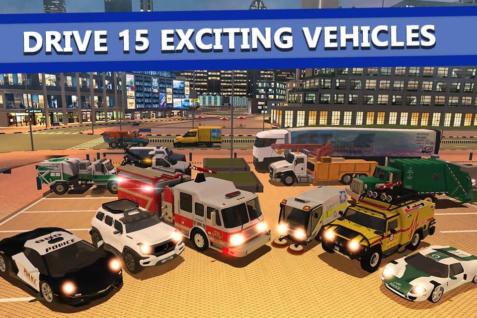 Приведіть місто максимальний порядок і хорошу безпеку разом з грою-симулятором Emergency Driver Sim City Hero. Вибирайте машину, тисніть газ і приступайте до роботи! У вас є величезний вибір машин з функціоналом: пожежна для гасіння пожеж, поліцейська для арешту злочинців, сміттєва для збору та вивозу сміття, кран для перевезення великих предметів, доставочная для доставки їжі або посилок, вантажівку для перевезення та інші. Відкрити їх можна за монети, які заробляєш на завданнях.