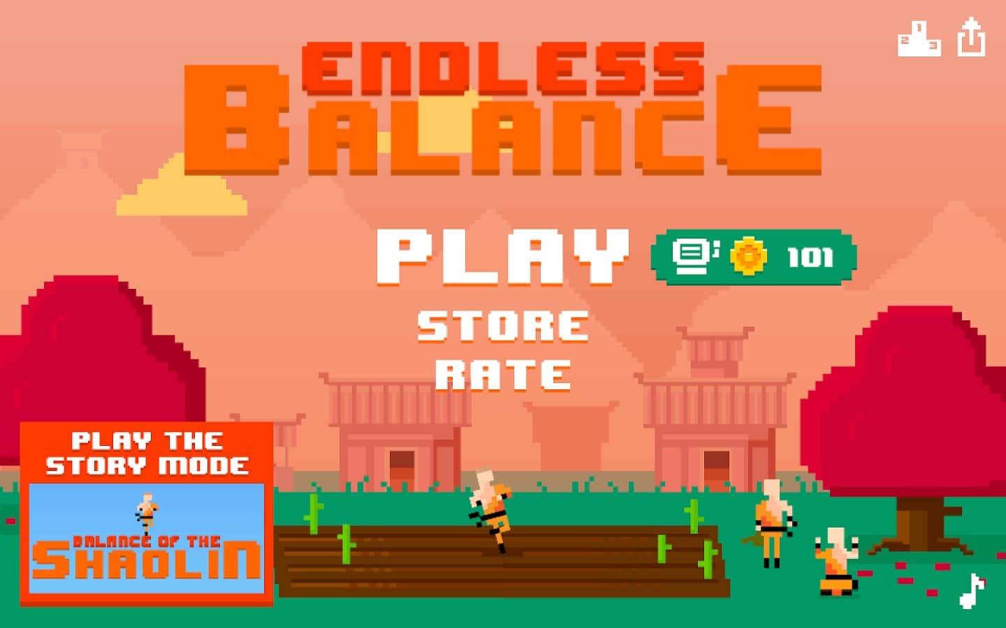 Endless Balance – бесконечная игра, в которой вам предстоит помочь мастерам боевых искусств балансировать на пике дерева. В этой игре вам предстоит управлять не только мастерами боевых искусств Шаолинь но и супергероями, космонавтами и еще более 25 новыми персонажами на ваш выбор. Балансируйте на постоянно растущем дереве и преодолевайте все препятствия в виде птиц и обезьян, а также наслаждайтесь постоянно меняющимися средами такими как: