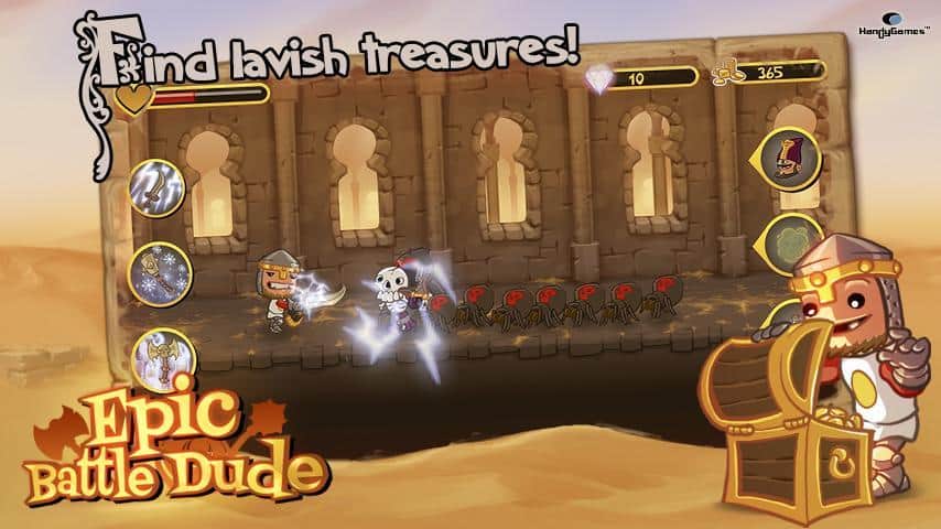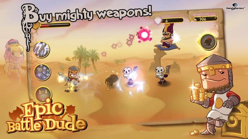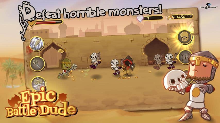 Epic Battle Dude-простенька, але дуже затягує, аркада на Андроїд. Її випустила знаменита компанія-HandyGames. Ваш герой живе в замку, але його безтурботне життя закінчилася, коли на замок почали нападати монстри. Вони викрали твою королеву, і вам належить її повернути. Прийшов час згадати молодість, взяти зброю в руки і виходити на полювання. Також ви можете покращувати характеристики свого героя.