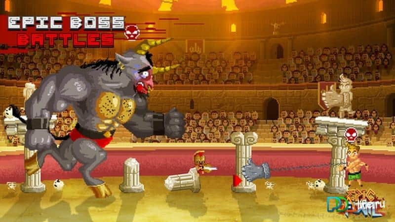 Epic Flail – двомірний екшен для IOS, де ви будете допомагати гладіаторові, виграти змагання. Ця гра перенесе вас в римський Колізей, де ви будете битися з іншими гладіаторами не на життя, а на смерть. Складність гри полягає в тому, що ваші суперники будуть володіти унікальними здібностями, які дозволять їм парити в повітрі, стрибати до небес і знищувати все навколо використовуючи свій меч. Вибирайте собі героя і вступайте в смертельну сутичку. Гра порадує вас стрімким темпом, яскравою відмінною графікою і захоплюючим сюжетом. Грайте в цю гру і перемагайте своїх суперників на рингу, домагаючись визнання і слави.