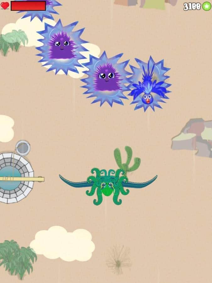 Evil Muncher / Жевастик - Забавна гра, яка підійде як дітям, так і дорослим. У цій грі ви будете грати за восьминога, який подорожує по світу. Але не все так добре, злі птахи та інші істоти хочуть з'їсти його! Все, що у нашого героя є, так це його щупальця, якими він відбивається. Одним або двома пальцями ви будете визначати позицію нашого жевастика, а пережовувати ворогів можна звичним зум-рухом або звичайним тапом по екрану.