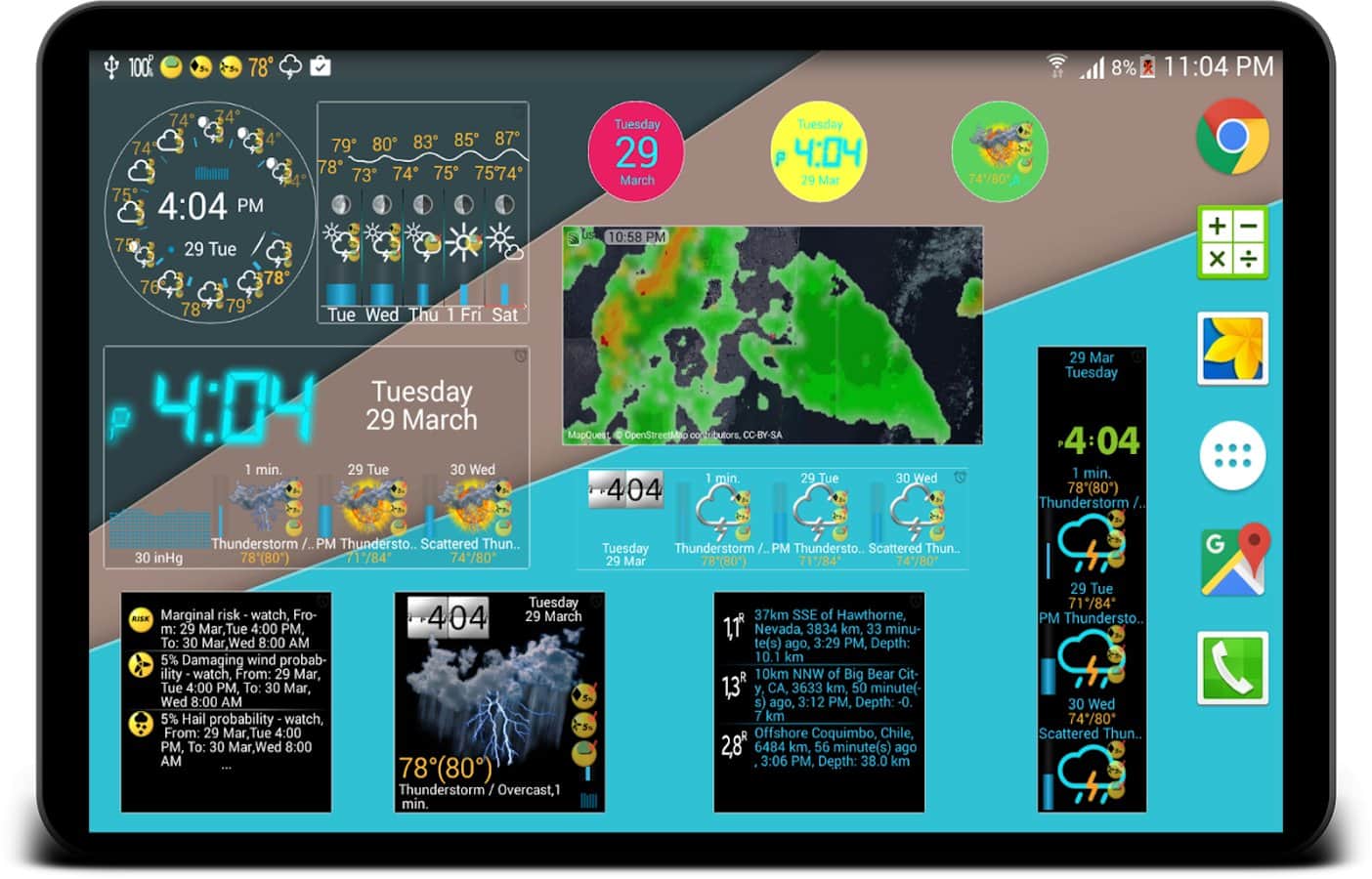 17 оригинальных виджетов погоды, времени, землетрясений, фазы луны и т.д