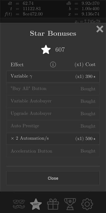 Exponential Idle - ви володієте незвичайними знаннями, скориставшись якими в правильній формі можна вирішити величезні рівняння з математики. Пізнайте заново це серйозну науку, довірившись не власної інтуїції, а точним рішенням. Заробіть необхідну суму грошей, пройшовши крізь певну кількість часу, насолоджуючись самим процесом. Розблокуйте нові досягнення, отримаєте заслужені винагороди за докладені зусилля, виконайте зміни змінних, купуйте оновлення і виконайте всі поставлені перед вами місії.