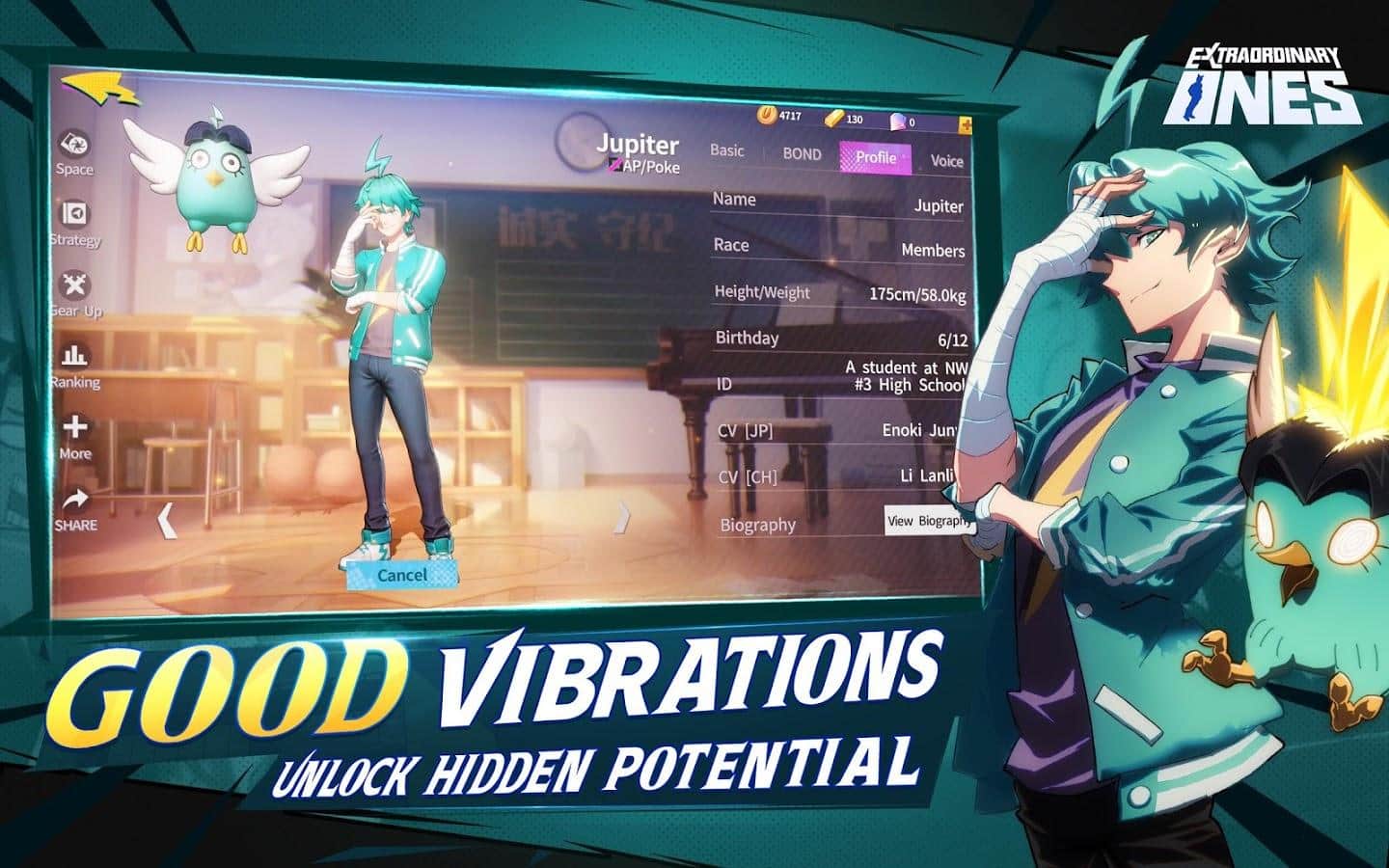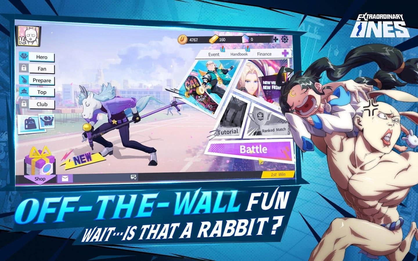 Прийміть участь в багатокористувацьких онлайн битвах в барвистій екшен грі Extraordinary Ones на Android. Вас чекає безліч героїв, знайомих по аніме Non Human Academy. 10 гравців діляться на дві команди для запеклих протистоянь 5 на 5. Дві команди змагаються на площі в битві, щоб знищити вежі один одного. Перший, хто знищить базу супротивника, виграє. Заробляйте різні поліпшення, щоб отримати перевагу під час бою. Кожен предмет може змінити правила гри і допомогти переламати хід битви. Покращуючи бойову майстерність своїх героїв, відкриваючи досягнення, збираючи предмети, пов'язані з героєм, і багато іншого, щоб розблокувати прихований контент, щоб ви і ваша команда завжди здобували перемогу.