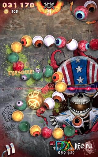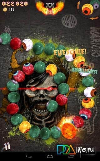 Eyelord - интересная интерпретация стандартной игры Zuma для андроид. Отличие состоит в том, что вместо разноцветных шариков вы имеете дело с глазами! Самыми что ни есть настоящими - с глазным яблоком и разных цветов - и голубоглазки, и карие и зеленые и многие другие! Интересные яркие локации и оформление дает этой аркаде шансы на высокие рейтинги!