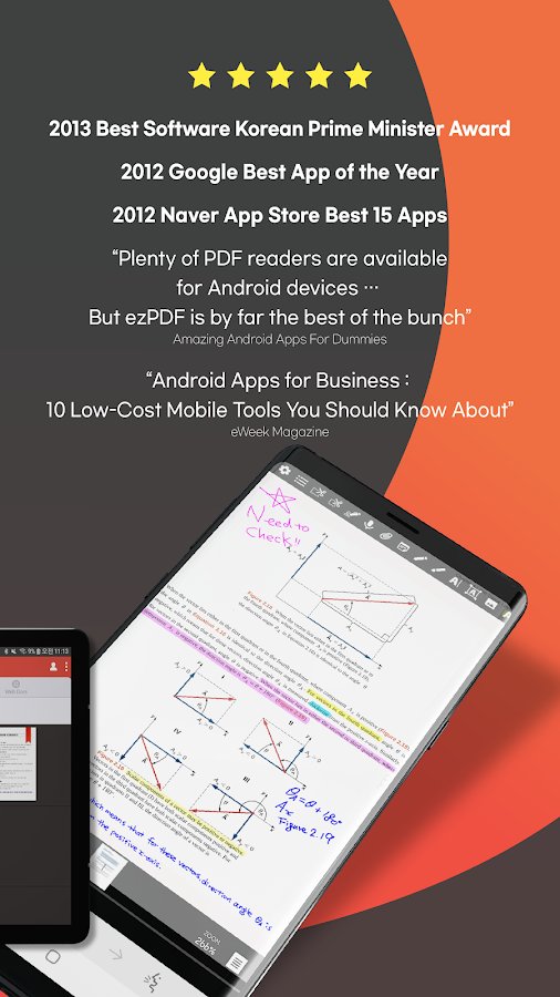 ezPDF Reader — хороша читалка для вашого андроїда від розробника Unidocs Inc. Приємний інтерфейс, швидка в роботі, є можливість виділення тексту і застосування закладок, а так само багато чого ще корисного для зручного і комфортного користування ezPDF Reader.