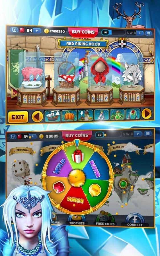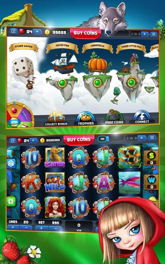 Fairy Tale Slot Machine – побувайте в казковому казино, де ви зустрінетеся з героями відомих мультфільмів таки як Білосніжка, Аліса і Пітер Пен і багатьма іншими. У цій грі ви будете відчувати свою удачу, запускаючи обертання барабана ігрового автомата. Робіть свої ставки і крутіть барабан так, щоб вам посміхнулася удача і сформувалася лінія виплат. Не бійтеся робити свої ставки і підвищувати їх номінал адже тільки таким чином ви зможете виграти джекпот. Дивіться уважно на екран барабана і на мигтіння яскравих картинок і зірвіть великий куш. Отримуйте чудові досягнення, граючи в захоплюючі міні-ігри. Всього в грі представлено 10 ігрових автоматів і велика кількість бонусів.