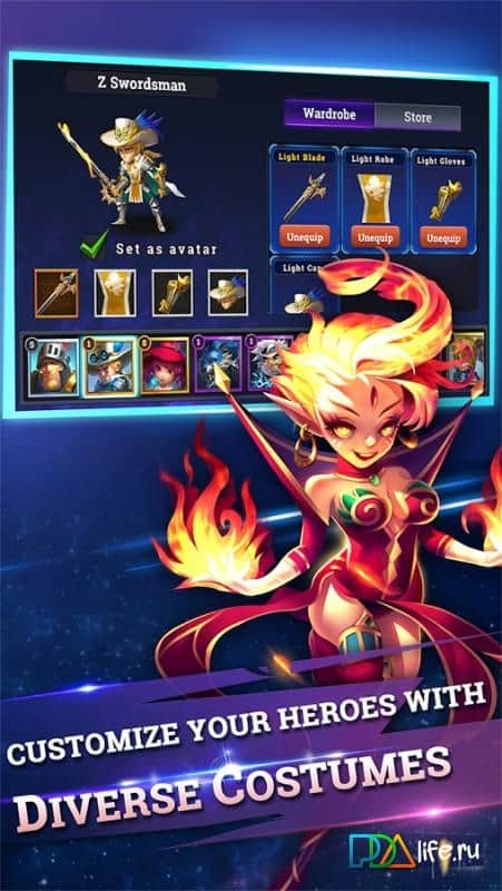 Fantasy Arena – онлайн гра на андроїд, де ви будете збирати свою непереможну колекцію карт. Кожен герой у цій грі володіє своїми неповторними здібностями і атаками. Зберіть свою колекцію героїв і кидайте виклик найсильнішим гравцям, б'ючись з ними на арені. Подорожуйте по казковому світу цієї гри і вступайте в нелегкі сутички з ворогами, перемагаючи їх шляхом потужних комбінацій карт. Намагайтеся зібрати таку колекцію героїв щоб кожен їх їх взаємно заміняв іншого героя і разом вони змогли перемогти найнебезпечніших суперників. Застосовуйте руйнівні комбо удари і насолоджуйтесь барвистими спецефектами. Придбайте для своїх героїв різні костюми і наделяйте їх новими вміннями.