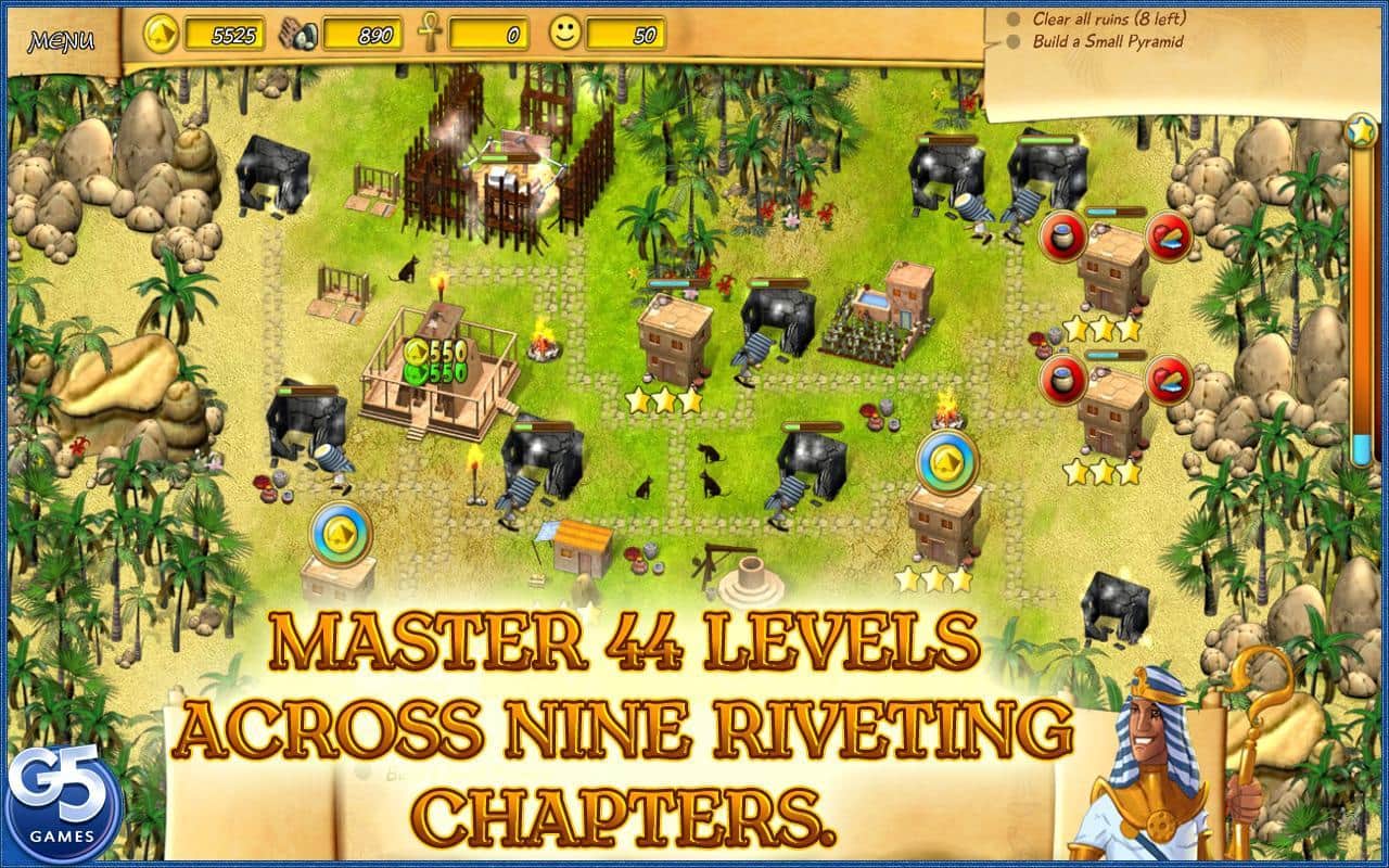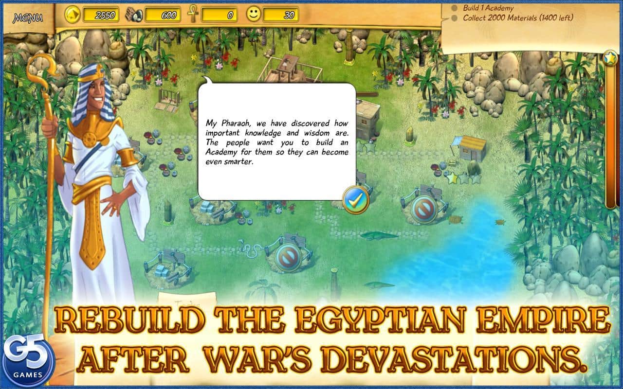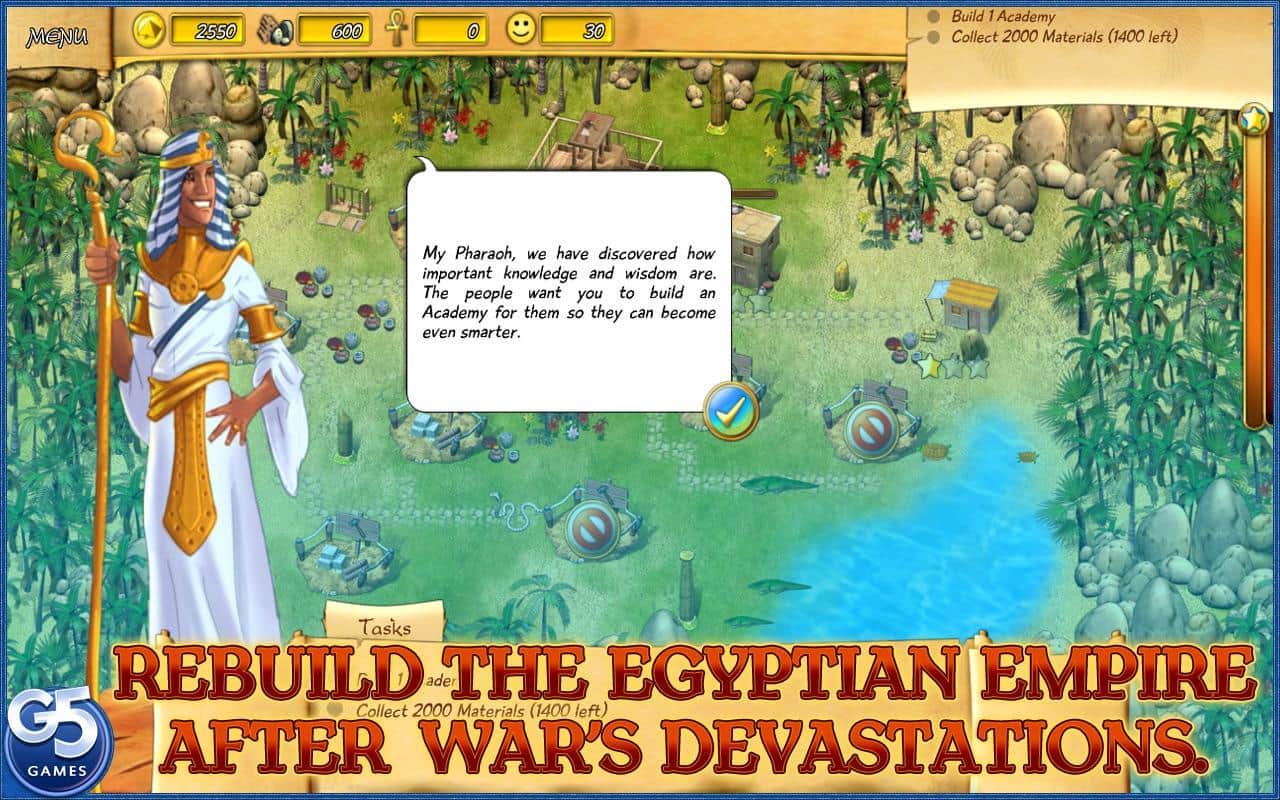 Доля Фараона - В цій грі вам належить повернуться у часи могутнього цивілізації стародавнього Єгипту. Але довга і важка війна перетворила прекрасне Єгипетське царство в бідні безкраї простори. Відступаючи жадібні загарбники Єгипту залишали після себе один жах і хаос. На місцях найбільших будов були одні руїни. І ви виступаючи відданим радником фараона повинні допомогти йому відродити колишню славу і багатство у величних містах Єгипту.
