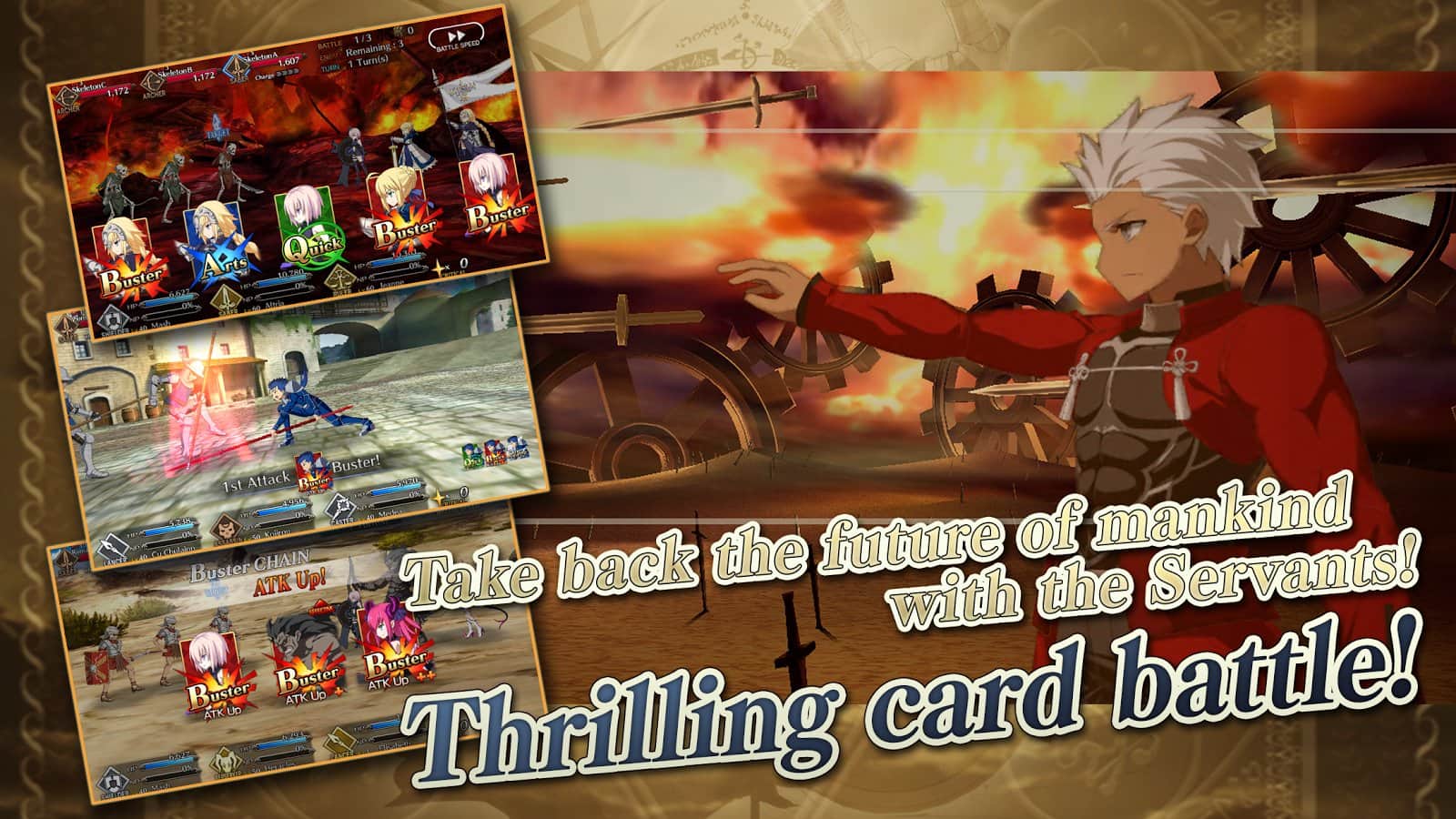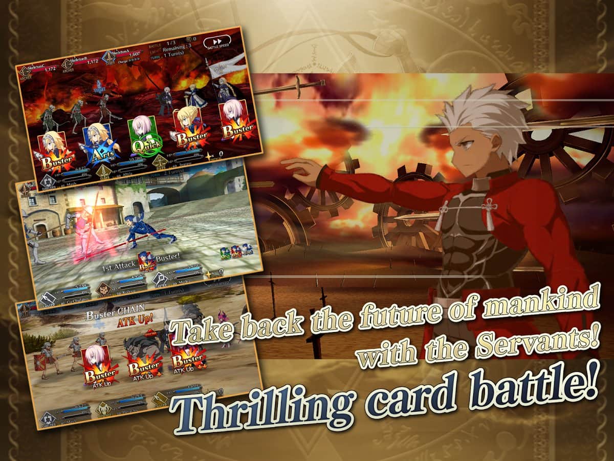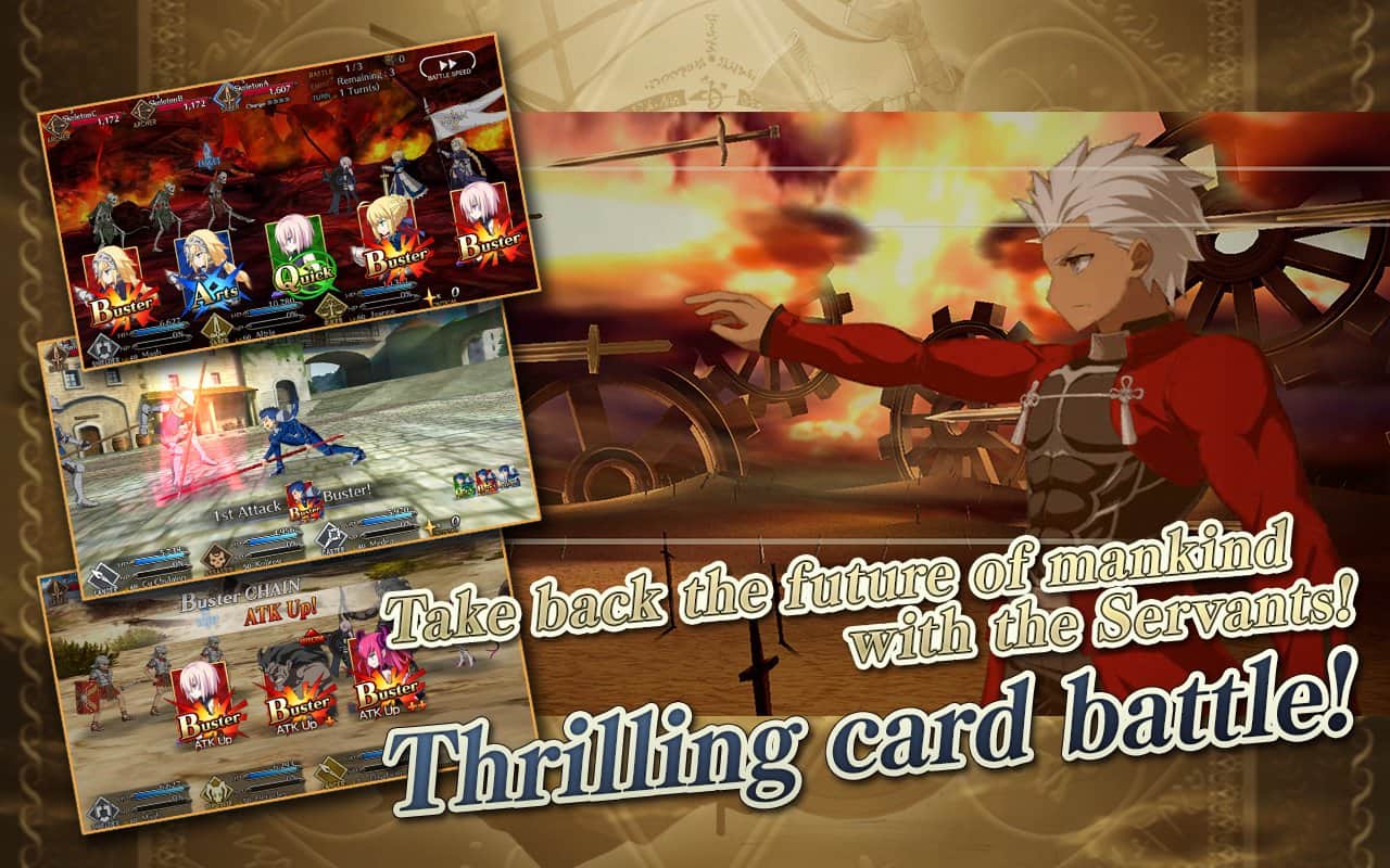 Fate/Grand Order – зберіть команду героїв з різних епох і запобіжите знищення всього людства. У цій грі ви будете подорожувати в часі і битися з темними силами за Святий Грааль. Збирайте карти з відважними героями, кожен з яких володіє унікальними здібностями і навичками. Вступайте в бій з численними ворогами і поплічниками темних сил і не дайте їм змінити хід історії і заволодіти всім світом. Управляйте героями в битві і застосовуйте містичні здібності кожного з героїв, щоб здолати лютого ворога. Виконуйте поставлені завдання і відкривайте для себе нових персонажів.