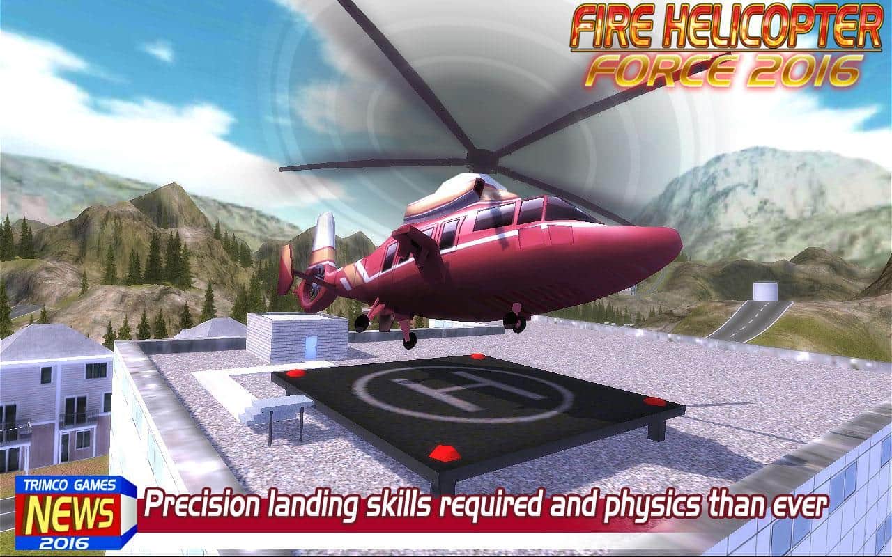 Fire Helicopter Force 2016 – візьміть під свій контроль військовий вертоліт який створено для того, щоб гасити пожежі. Керуйте вертольотом і ведіть його до вогнища спалаху, гасячи пожежу на ранніх його стадіях. Всі пожежі, які вам доведеться гасити, знаходяться у важкодоступних місцевостях. Літайте над лісами, гірськими перевалами і полями і зависайте над заданою метою, спускаючи воду у вогнище загоряння. Постійно слідкуйте за радаром і вказівками диспетчера, який буде направляти вас на місце НП. Виконуйте всі поставлені перед вами цілі і отримуйте гідні нагороди і звання, а також купуйте новий більш маневрений вертоліт.
