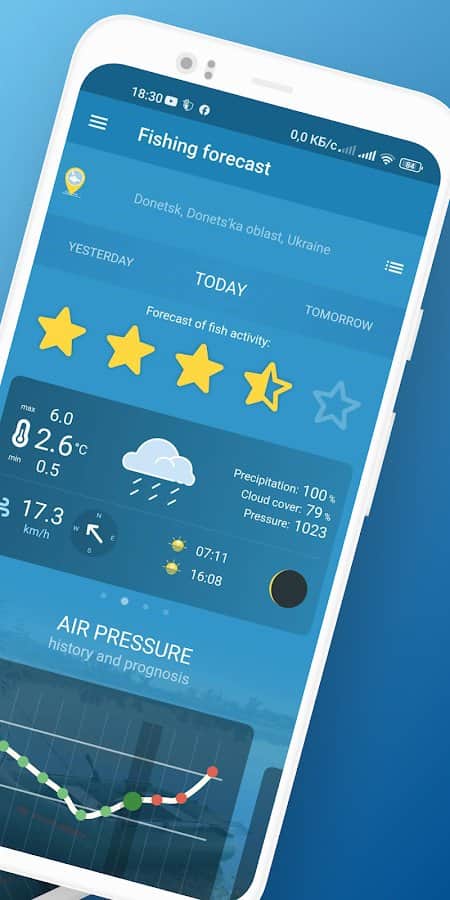 < p>Fishing Forecast - ваш незамінний помічник у світі рибальства! Навчіться передбачати риб'ячі настрої завдяки цьому інноваційному додатку. Воно грунтується на даних атмосферного тиску, що дозволяє точно передбачати клювання риби.Стабільний атмосферний тиск-запорука успішного улову. А наше додаток допоможе вам визначити ідеальний час для риболовлі, показуючи найкращі моменти активності риби. Це як ваш особистий барометр, який дає вам перевагу над іншими рибалками.