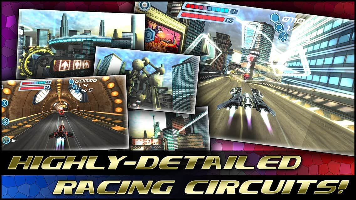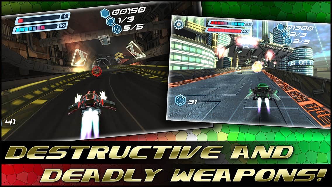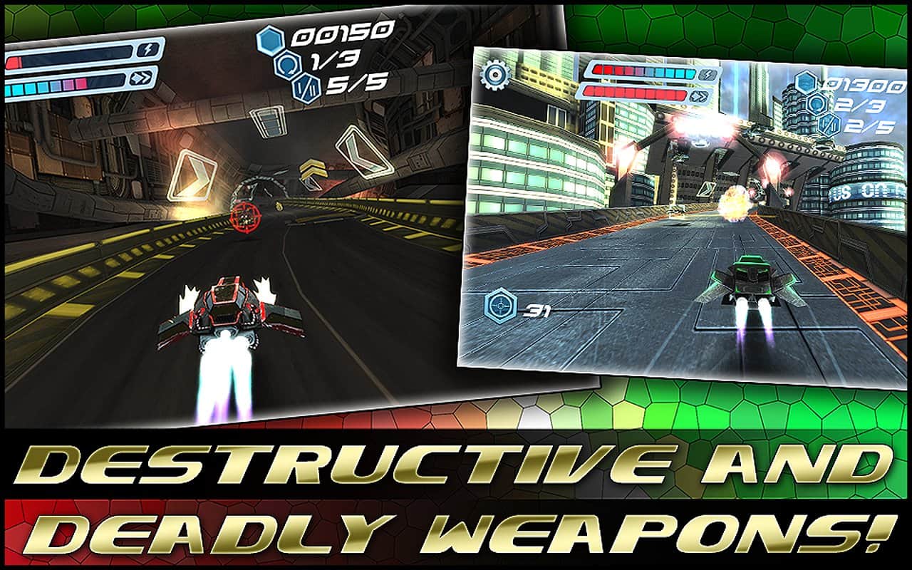 FLASHOUT 3D-одна з топових ігор, в якій ви мчите по футуристичним трасах на шаленій швидкості за титул чемпіона! Поступово відкриваються нові апарати, траси, проходження стає складніше, суперники небезпечніше. Але найбільш вражаюче в грі-це якість графіки, геймплея і музики. До речі про музику, крім стандартних треків, які дуже непогані, ви зможете поганяти ще й під власні, які виберіть. А еквалайзер проаналізує музичний трек і під нього створить спец ефекти! Спробуйте якісні космічні гонки в різних режимах-кар'єра, на час, Швидка гонка! Ну і море бонусів-куди ж без них, а також апгрейди за зібрані монетки по трасі!