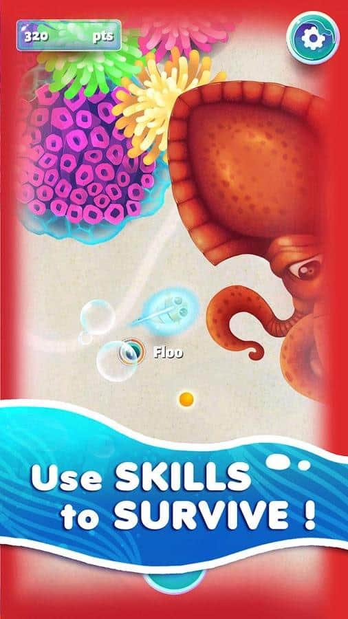 Floo : Fish Aquatic Adventure – керуйте невеликий рибкою у відкритому океані і побоюйтеся зустрічі з ворогами. У цій грі ви візьмете під свій контроль невелику рибку і з допомогою одного дотику пальця до екрану проведете її по всім небезпечним світів. Дослідіть красивий і лякаючий світ цієї гри і подорожуйте по коралових рифах, нескінченним заростях водоростей і поедайте по шляху рибок мають розмір менше вашого. Увеличивайтесь в розмірах для того щоб не бояться сутичок з ворогами і збирайте по шляху численні бонуси і посилення. Гра порадує вас чудовою графікою, численними і різноманітними рибками і можливістю змагатися з іншими гравцями.